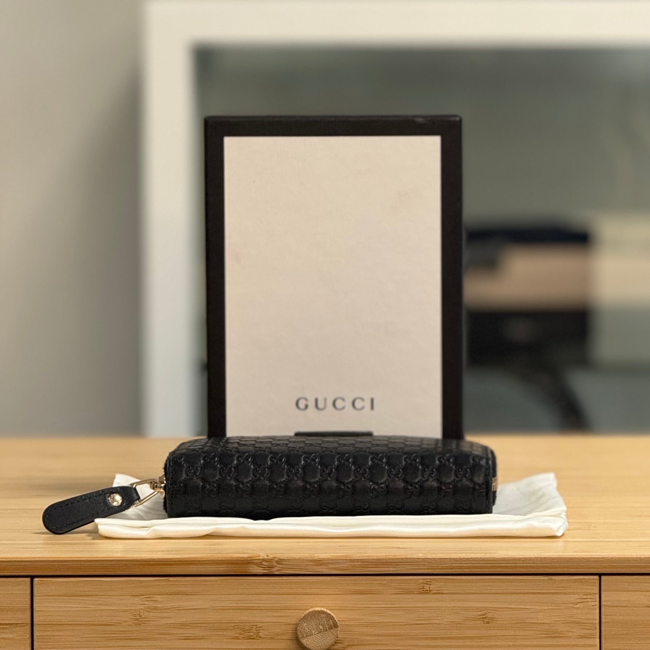 Description: This Gucci Microguccissima Wallet has a zip-around closure. Inside there are 4 flat pockets, 12 card slots, 1 notes pocket and 1 zipped section.