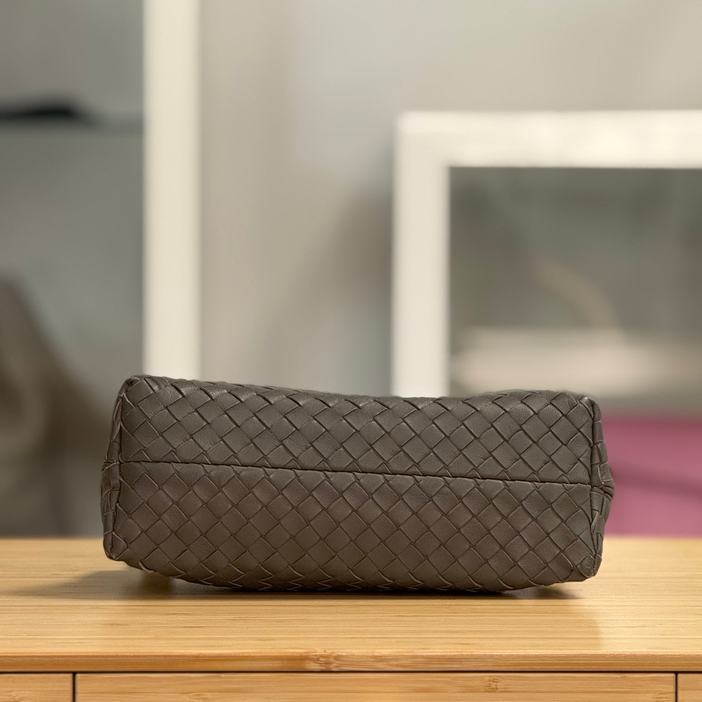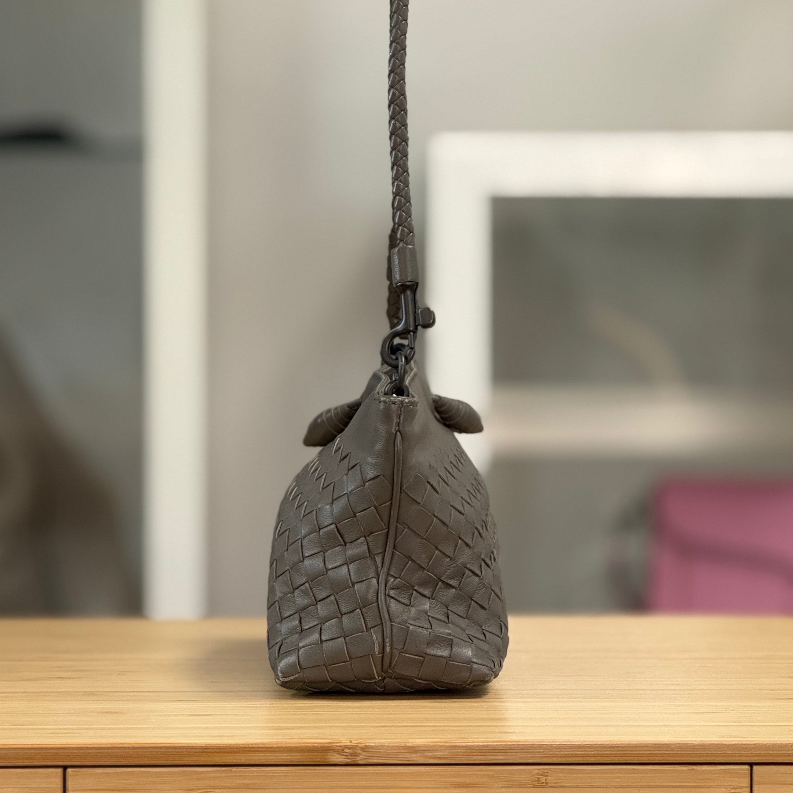 Serena likes: Beautifully soft woven leather, perfectly sized for just the essentials.
