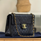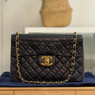 Description: This Chanel Maxi Single Flap has a leather/chain strap. It has a flap closure with CC turncock fasten. Inside there is one large main compartment, a flat pocket and a zipped pocket. It is a 3 series Chanel so it is from 1994-96.