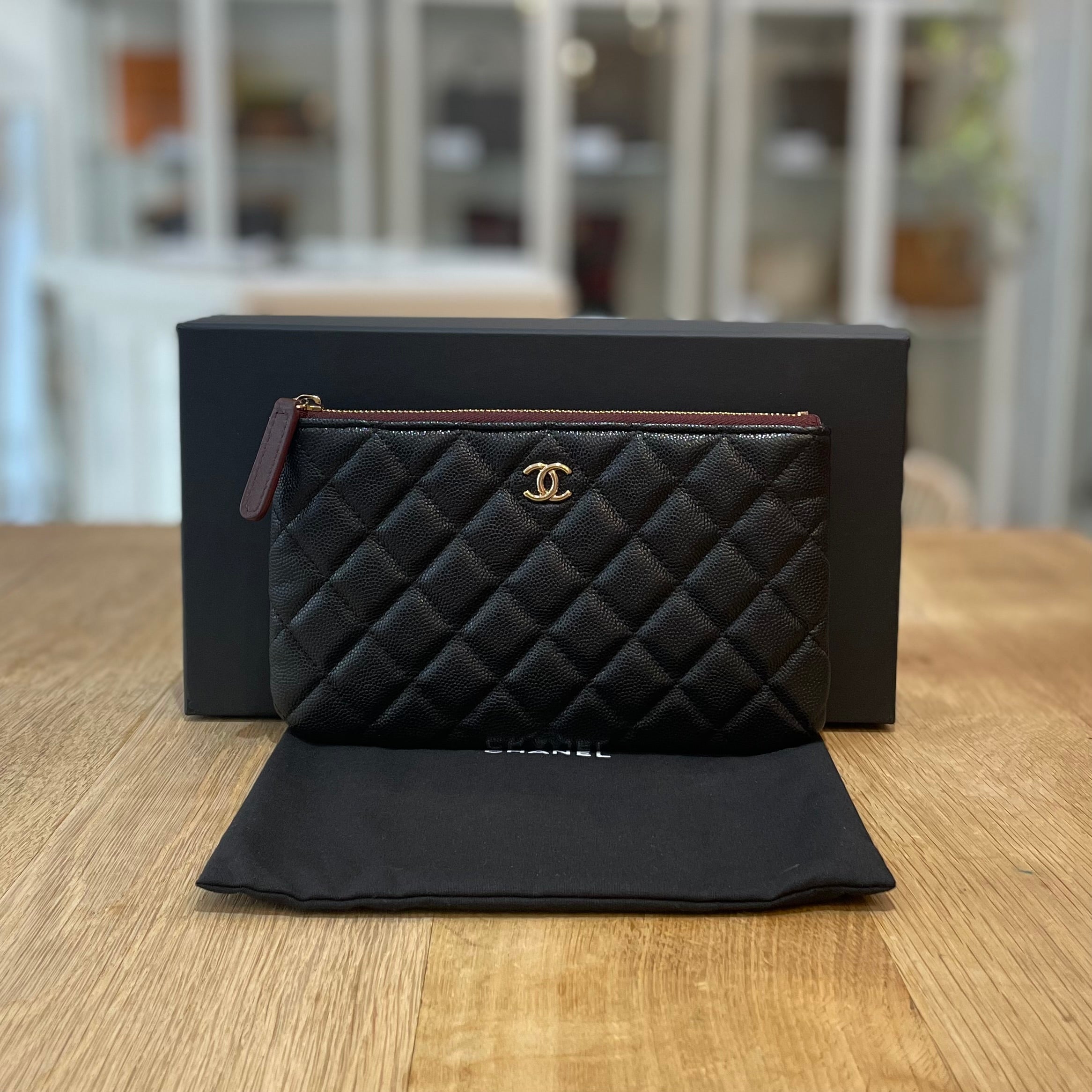 Description: This Chanel O Case in size small has a zip-top closure. Inside there is 1 pocket, and 3 card slots. The date code begins 28, so it is from 2019.