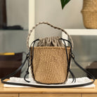 Description: This Chloé Woody Basket bag has a braided top handle and a longer leather shoulder strap. It has a drawstring closure with one main compartment inside.