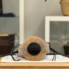 Fabric: Exterior-raffia. Interior-fabric. Straps-leather, fabric