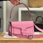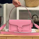 Description: The Coach Tabby 26 has a removable & adjustable long strap and a removable & adjustable shoulder strap. It has a flap closure with a magnetic press-stud fasten, and a flat pocket underneath. It has an external flat pocket on the back of the bag. Inside there are 2 compartments divided by a central zipped pocket.