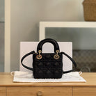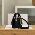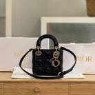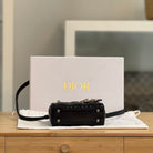 Description: This Dior Lady Dior is size micro has double top handles and a removable & adjustable strap. Attached to the top handles is the D.I.O.R It has a hidden flap closure. It is from 2020.