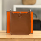 Description: This Hermès Evelyne in size 16 has a removable strap. It has a belt fasten with press-stud. Inside there is one main compartment. The blind stamp is 'K' with no surrounding shape so it is from 2025.