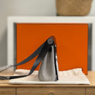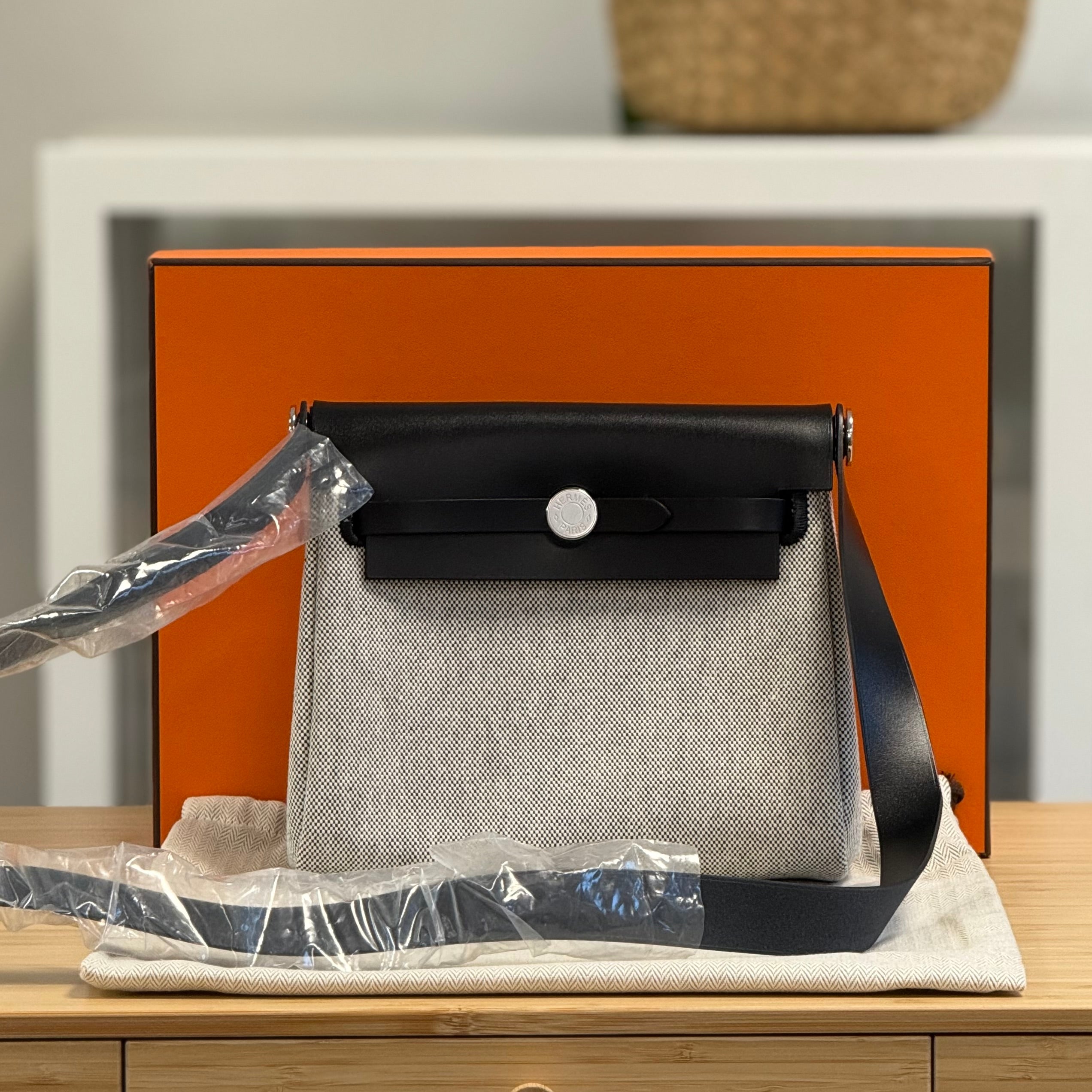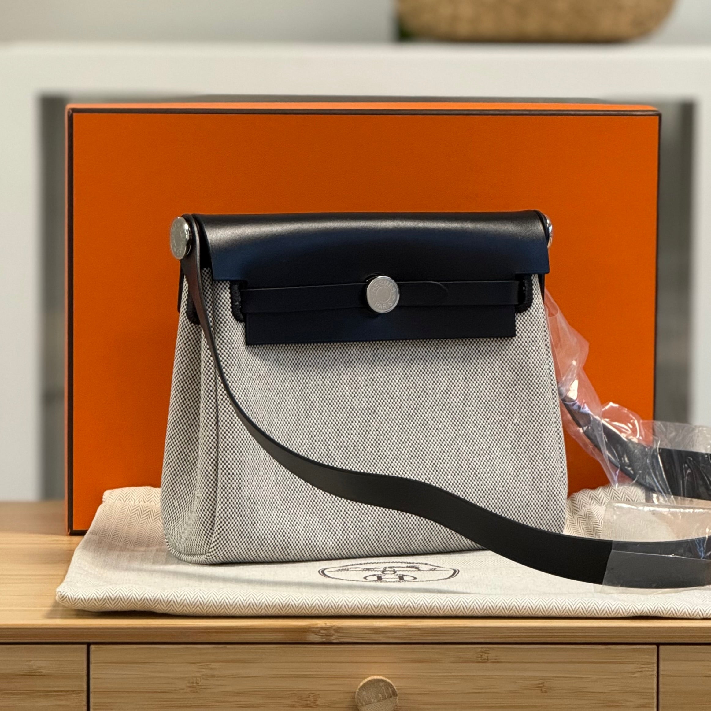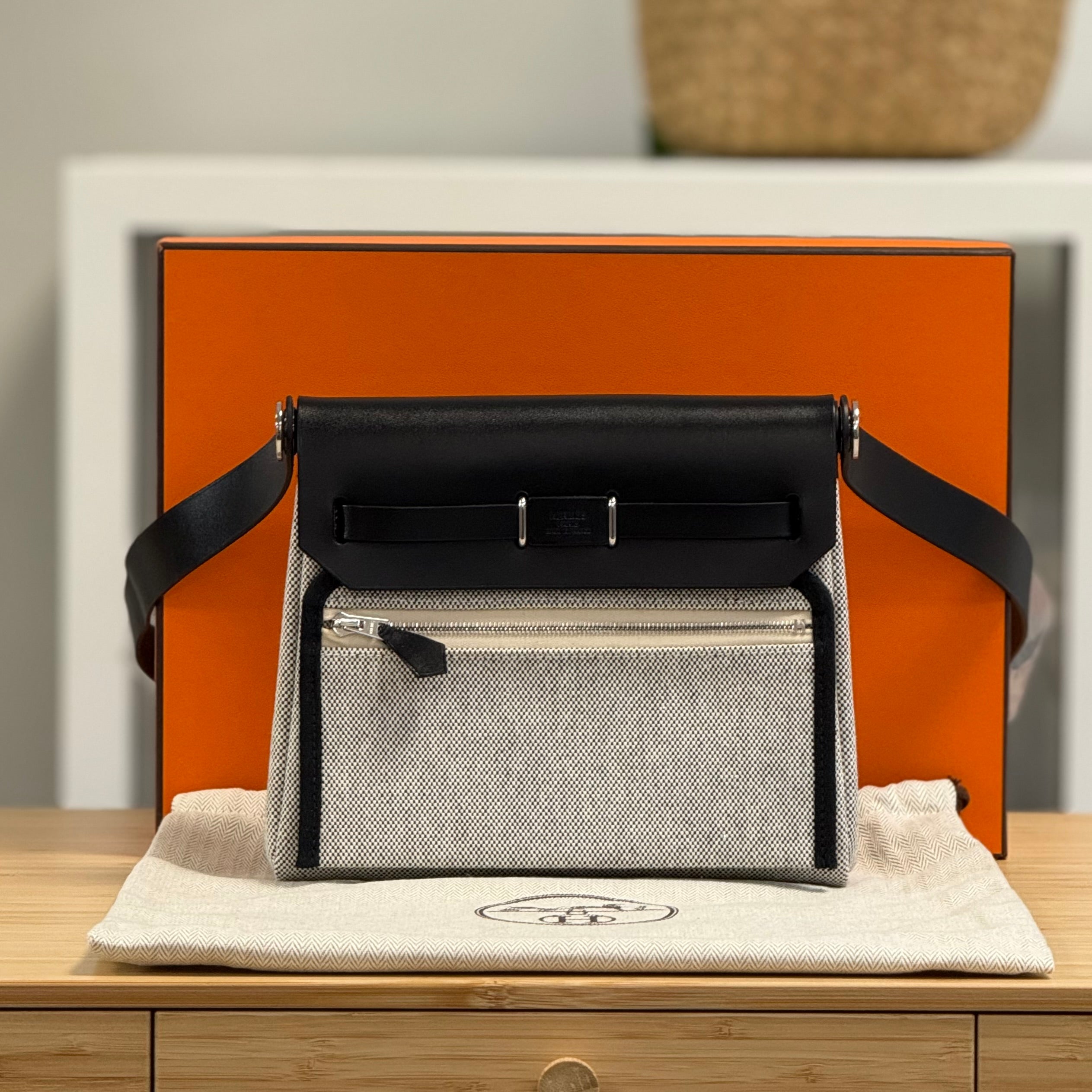 Description: This Hermès Herbag 20 has a long strap and a Clou De Selle flap closure with a belted fasten. It has 1 exterior zipped pocket on the back of the bag. The blind stamp is K, so it is from 2025.