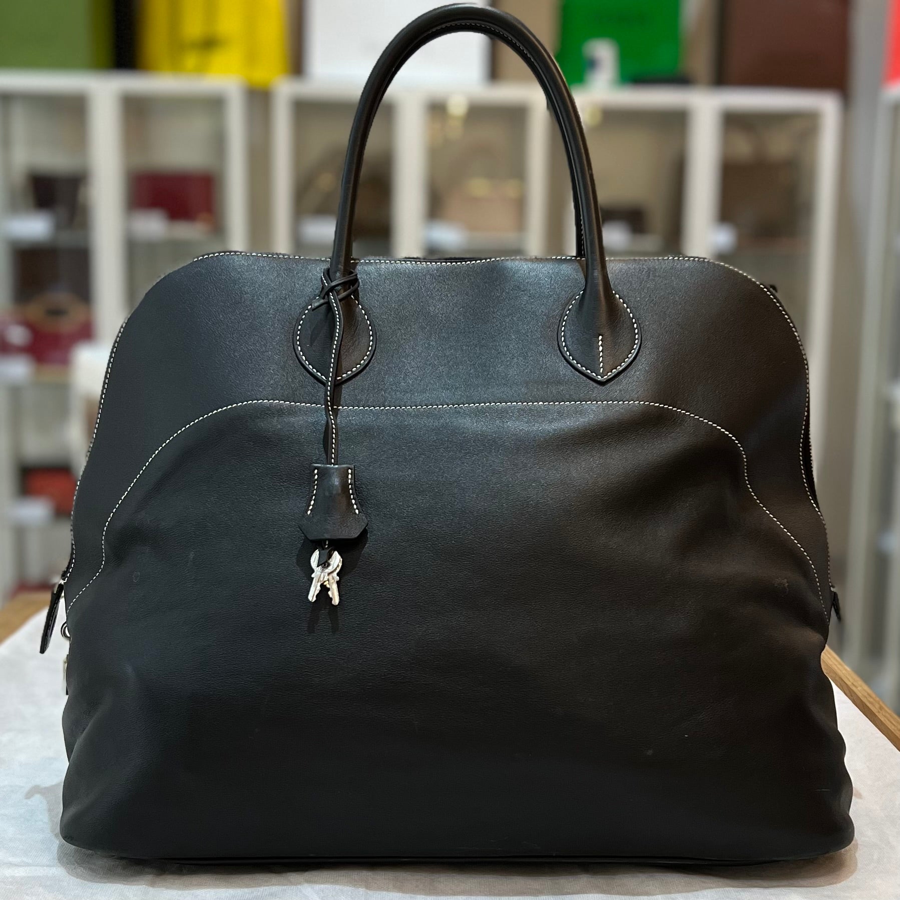 Description: This Hermès Relax Bolide 45 has double top handles, 4 base studs and a zip-top closure. Inside there are 4 flat pockets. The date stamp is T (no surrounding shape) so it is from 2015.