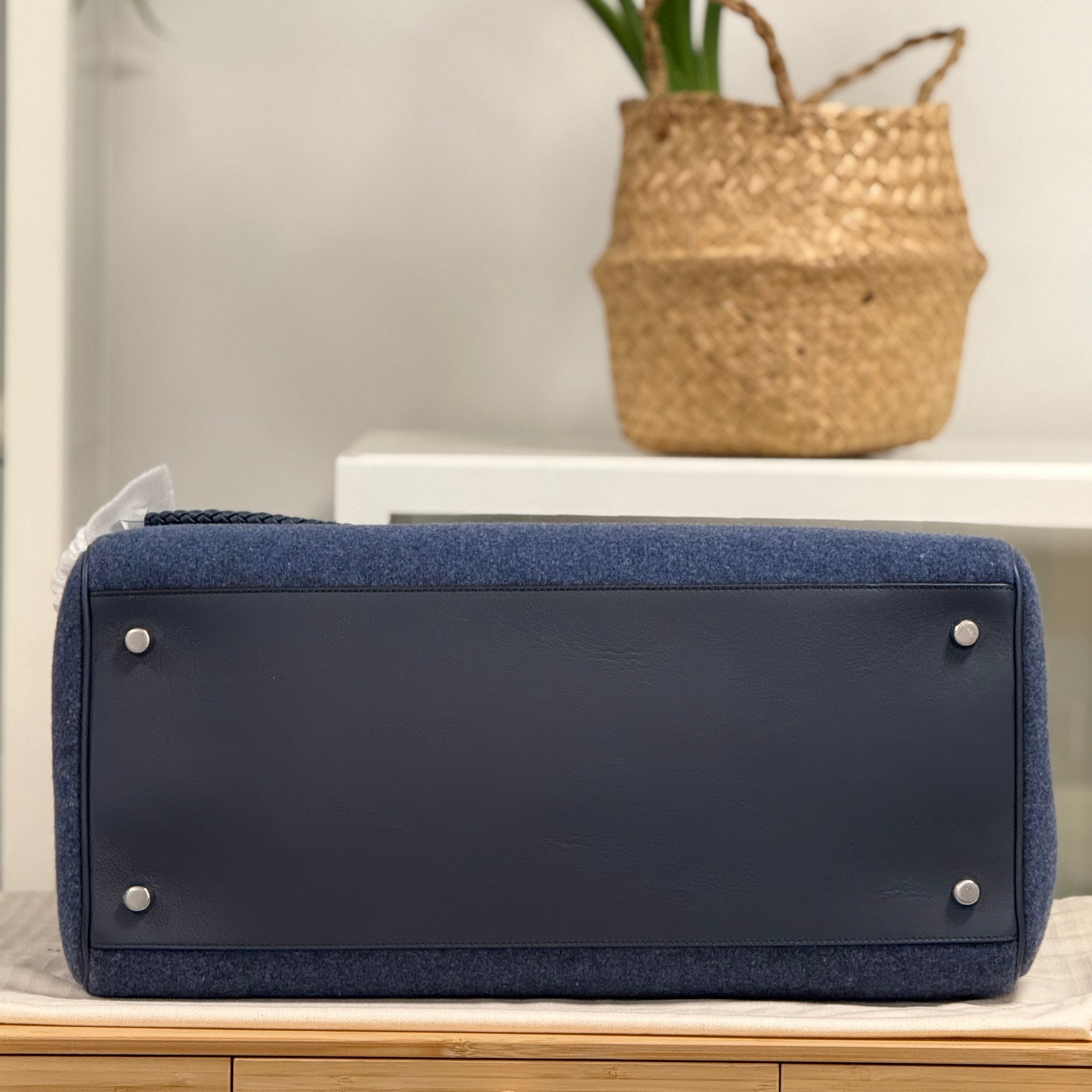 Description: This Mulberry oversized Iris Weekend Bag has double top handles, a removable & adjustable strap and a removable braided strap. It has a magnetic keystone lock fasten. It has 4 base studs. Inside it has 1 large flat pocket and 1 large zipped pocket. It has 2 internal buckles to adjust the side gussets.