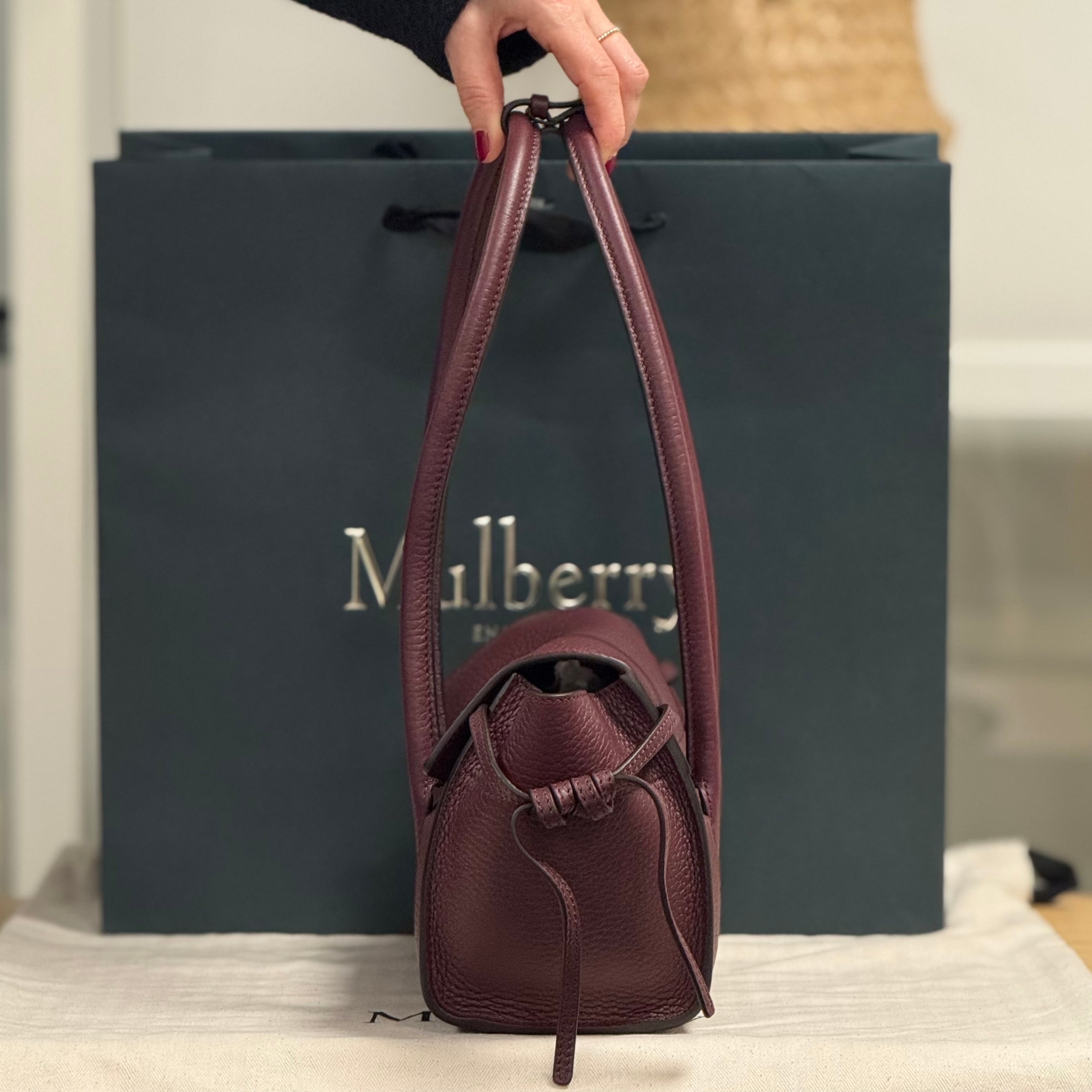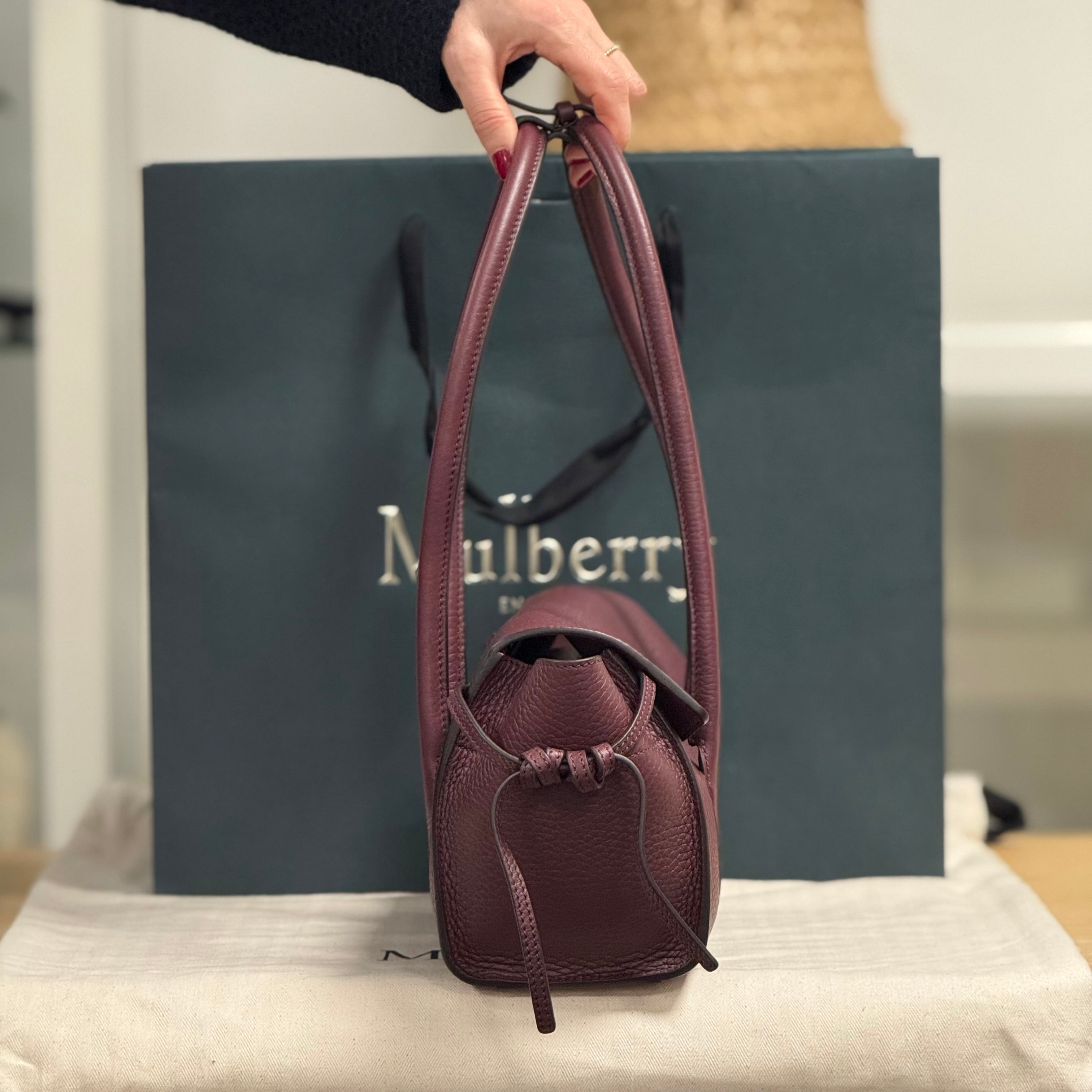 Included: Mulberry paper bag, Mulberry dustbag, Mulberry large envelope, Mulberry compliments card, Mulberry invoice