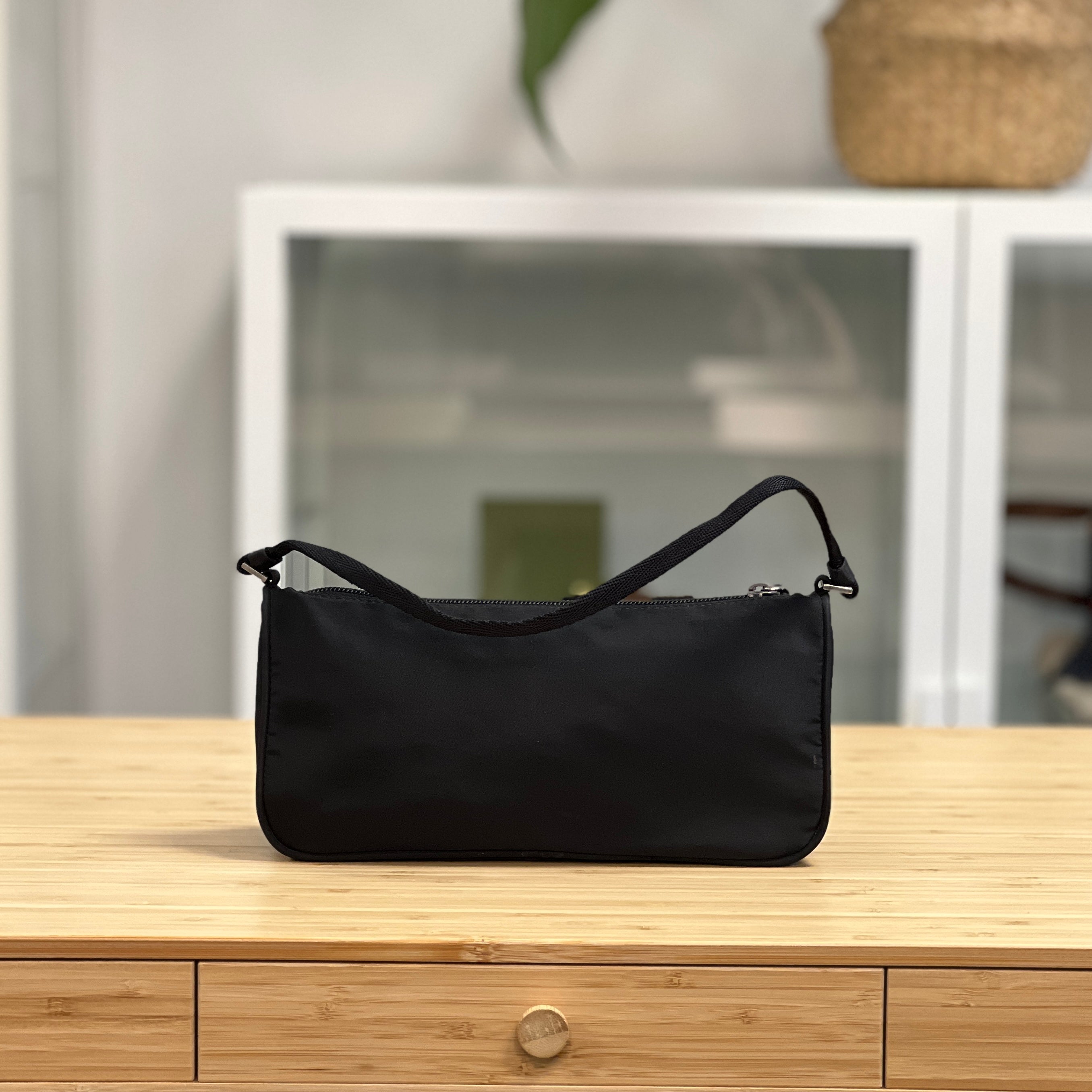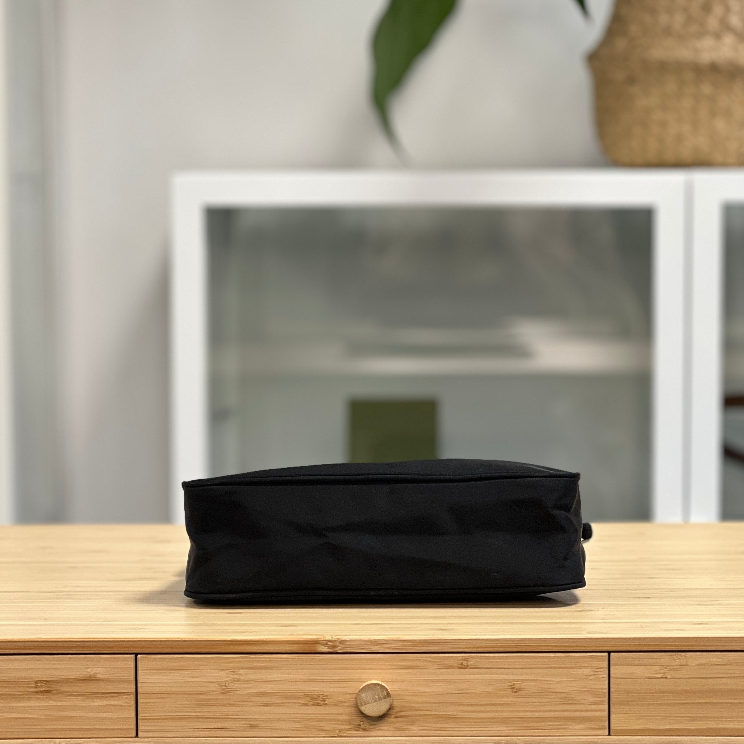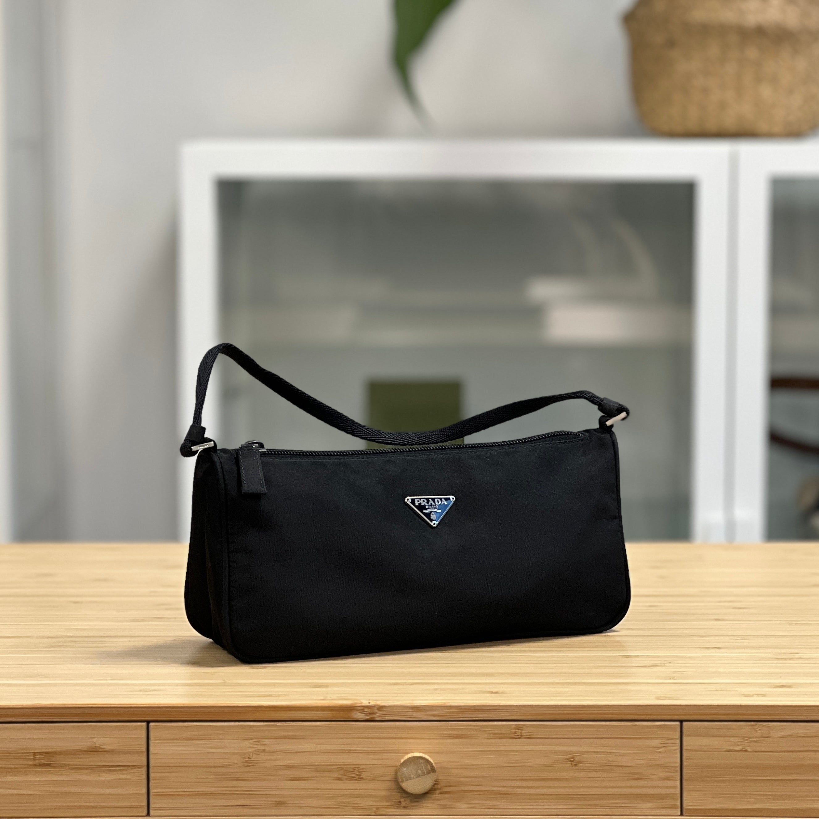 Description: This Prada Nylon Pochette has a top handle with a zip-top closure.