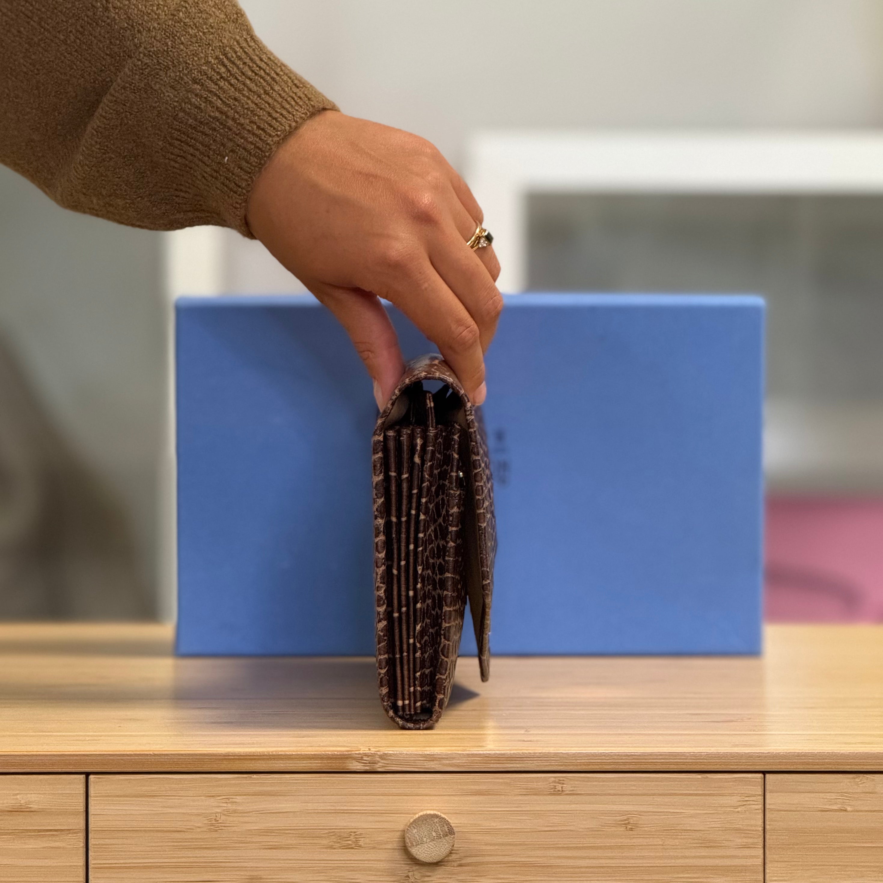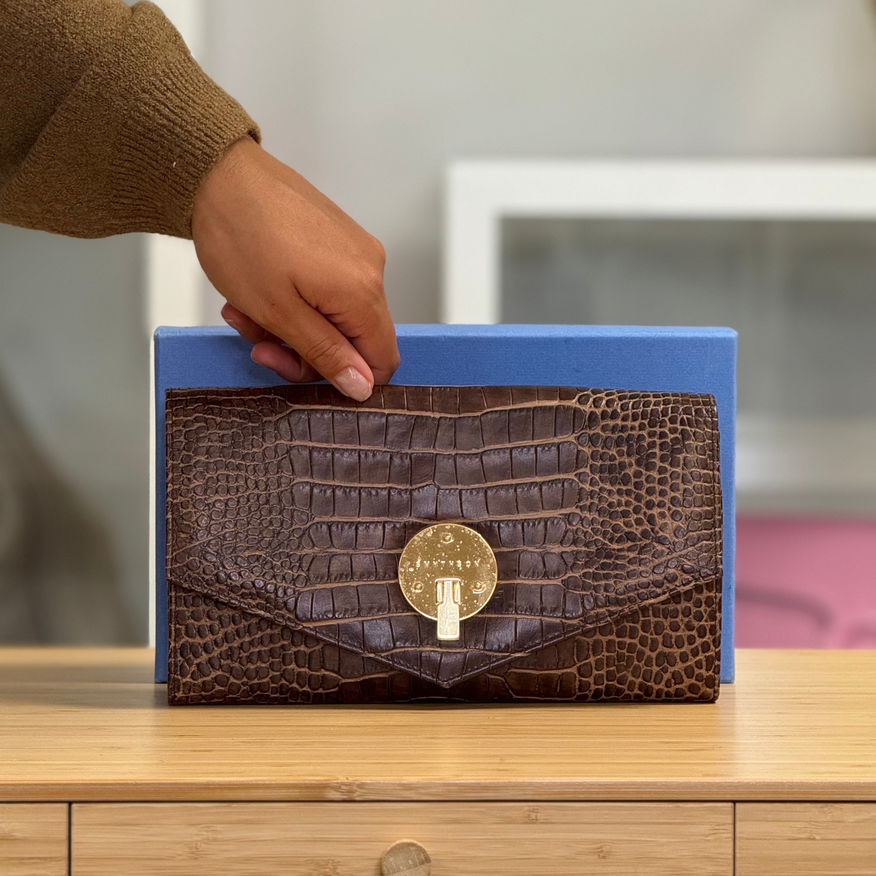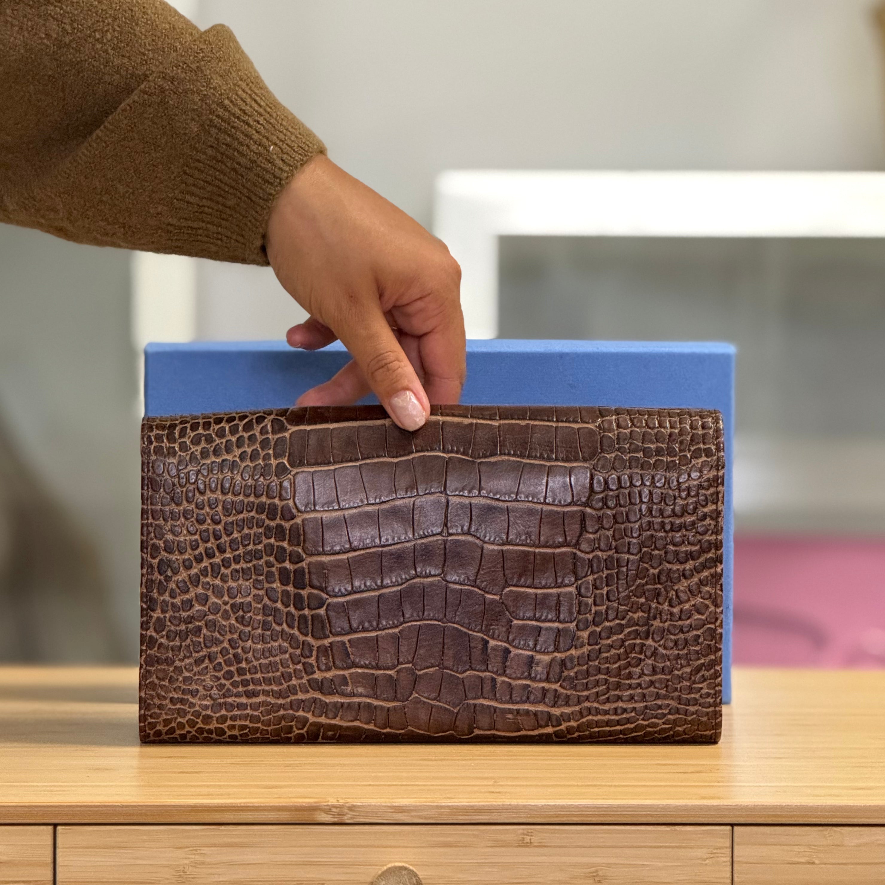 Fabric: Exterior-croc embossed leather. Interior-suede