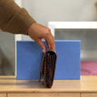 Description: This Smythson Travel Wallet has an envelope flap closure with a flip-lock fasten. Inside there is 1 zipped pocket, 6 pockets and 9 card slots.