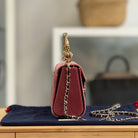 Description: This Aspinal of London Mayfair Club in size small has a lion's head design top handle and a removable long strap. It has 4 base studs. There is an exterior flat pocket on the back. It has a flap closure and features a signature Aspinal shield lock fasten. Inside there is one main compartment with a flat pocket.