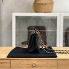 Description: This Chanel Mini Classic has a leather & chain strap. It has 1 exterior flat pocket on the back of the bag. It has a flap closure with CC turn-lock. Inside there is 1 flat pocket and 1 zipped pocket. The date code begins 13 so it is from 2009-2010.
