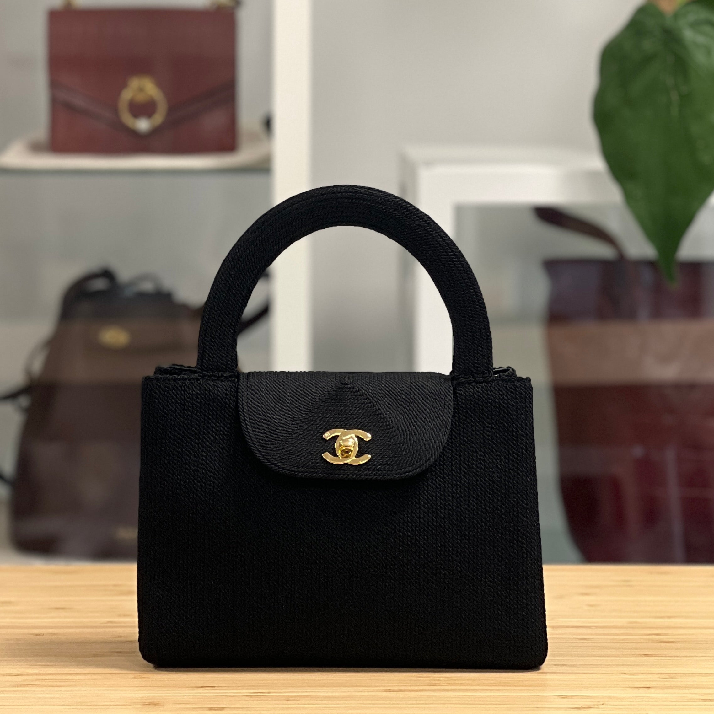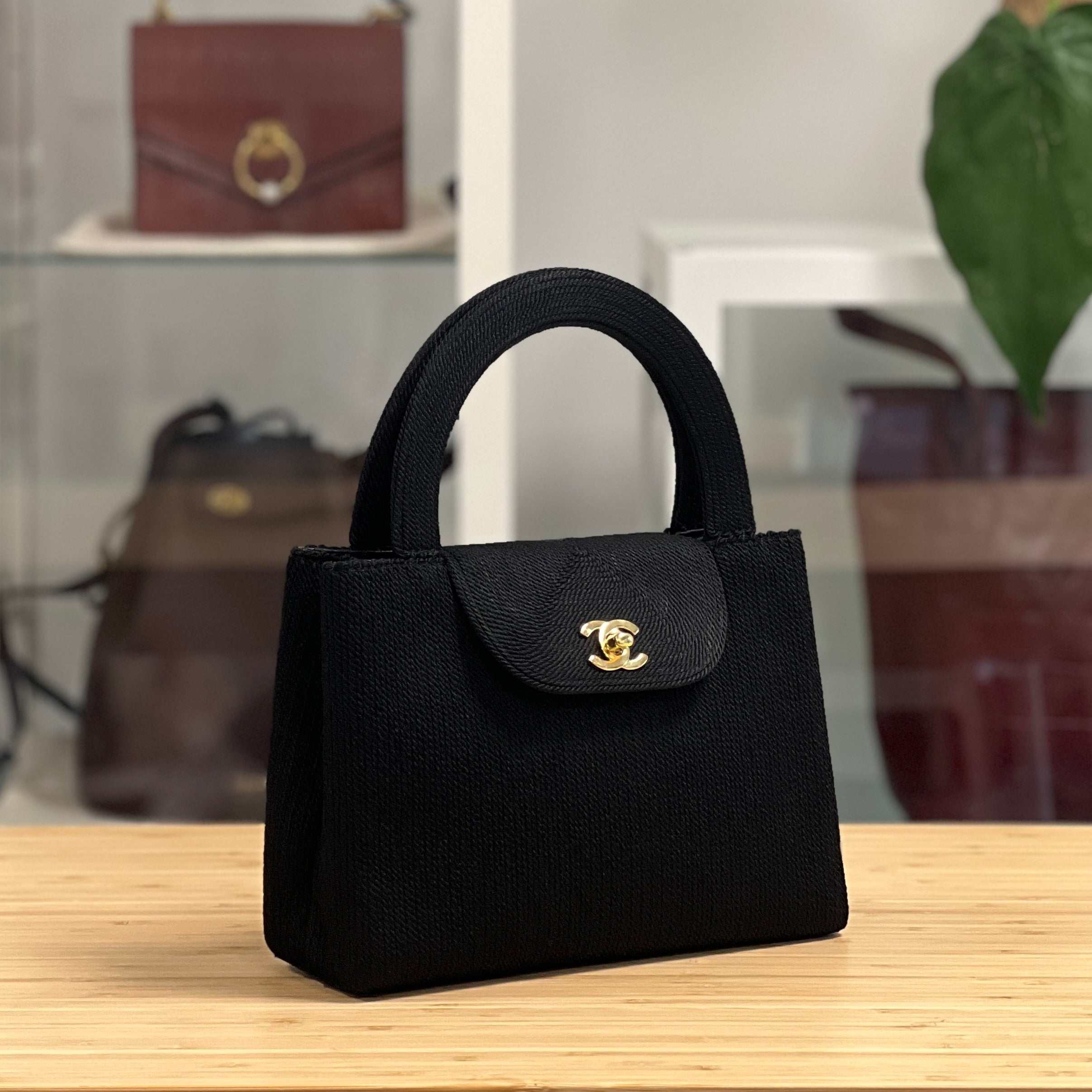 Description: This Vintage Chanel Silk Rope Kelly has double top handles. It has a flap closure with CC turnlock fasten. Inside it has 1 flat pocket and 1 zipped pocket. The date code begins 5 so it is from 1997-1999.