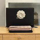 Included: Chanel Box, silver camellia, Chanel dustbag, Chanel card sleeve, Chanel care guide