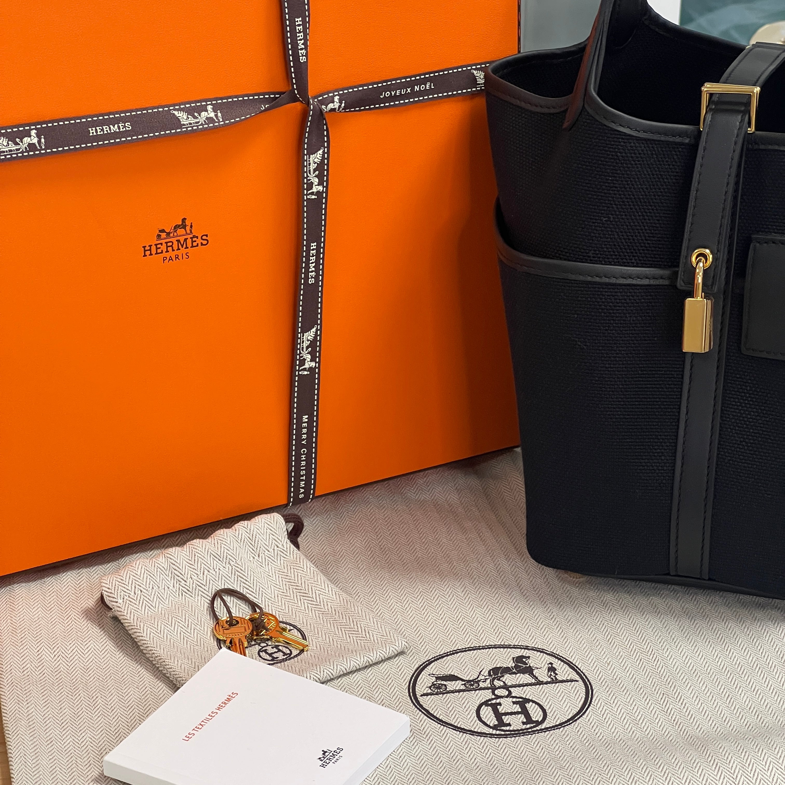 Included: Hermès box, Hermès dustbag, Hermès drawstring pouch, Hermès keys x2, Hermès padlock, Hermès care guide, Hermès ribbon