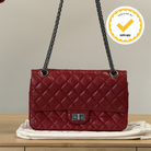 Description: This Chanel 2.55 Reissue has an adjustable strap. It has an external flat pocket on the back. It has 2 flap closures. The first flap closure has a Mademoiselle turn-lock, and a ‘love-note’ zipped pocket underneath. The second flap closure has a press-stud and a large flat pocket underneath. In the main compartment there are 2 flat pockets and 1 lipstick pocket. This is a 16 series Chanel 2012. Verified with Entrupy Authentication.