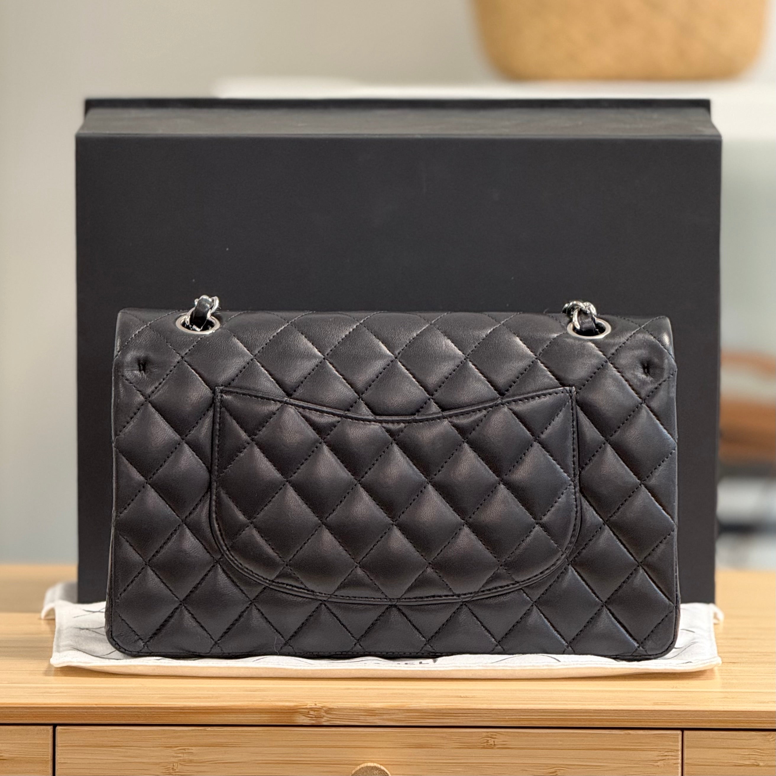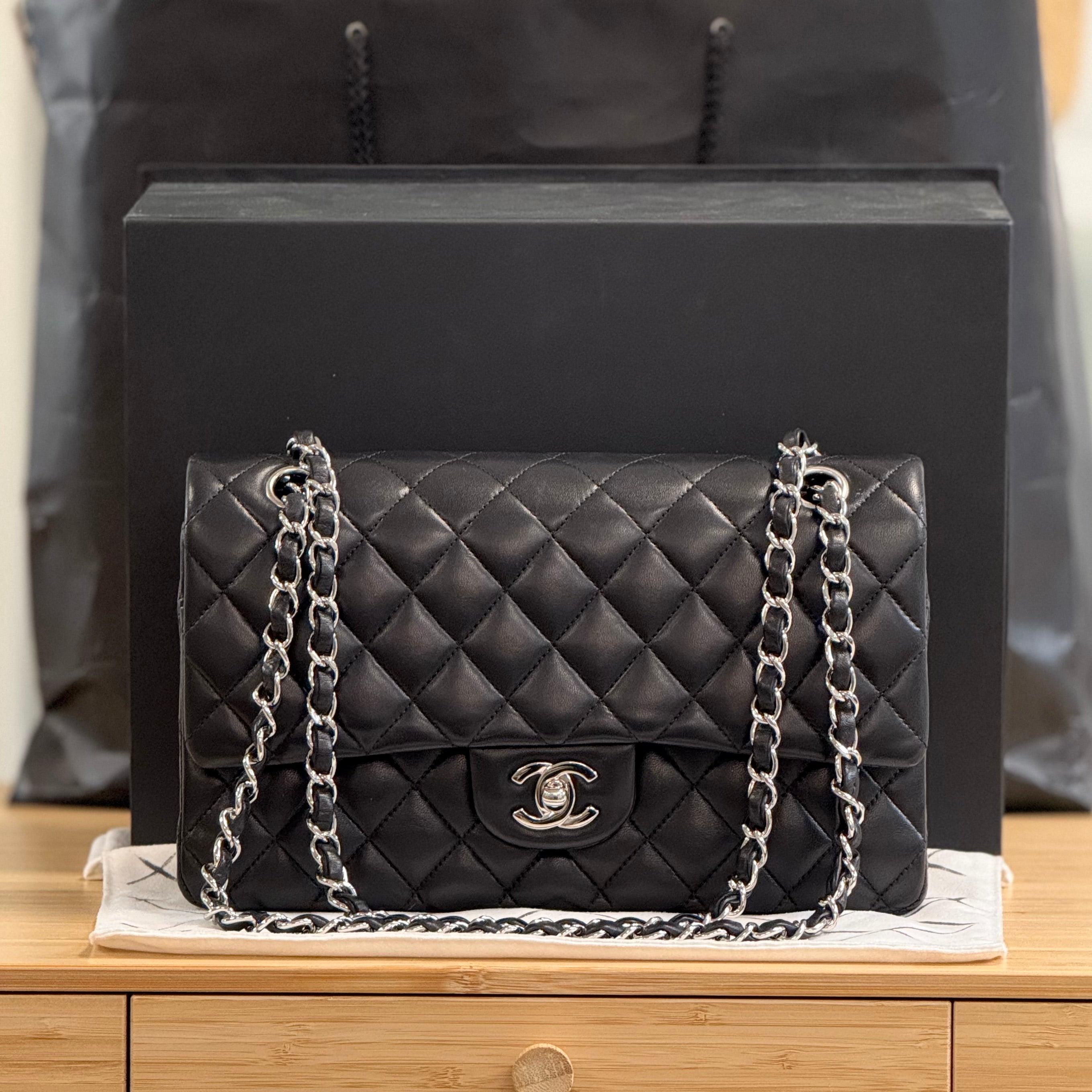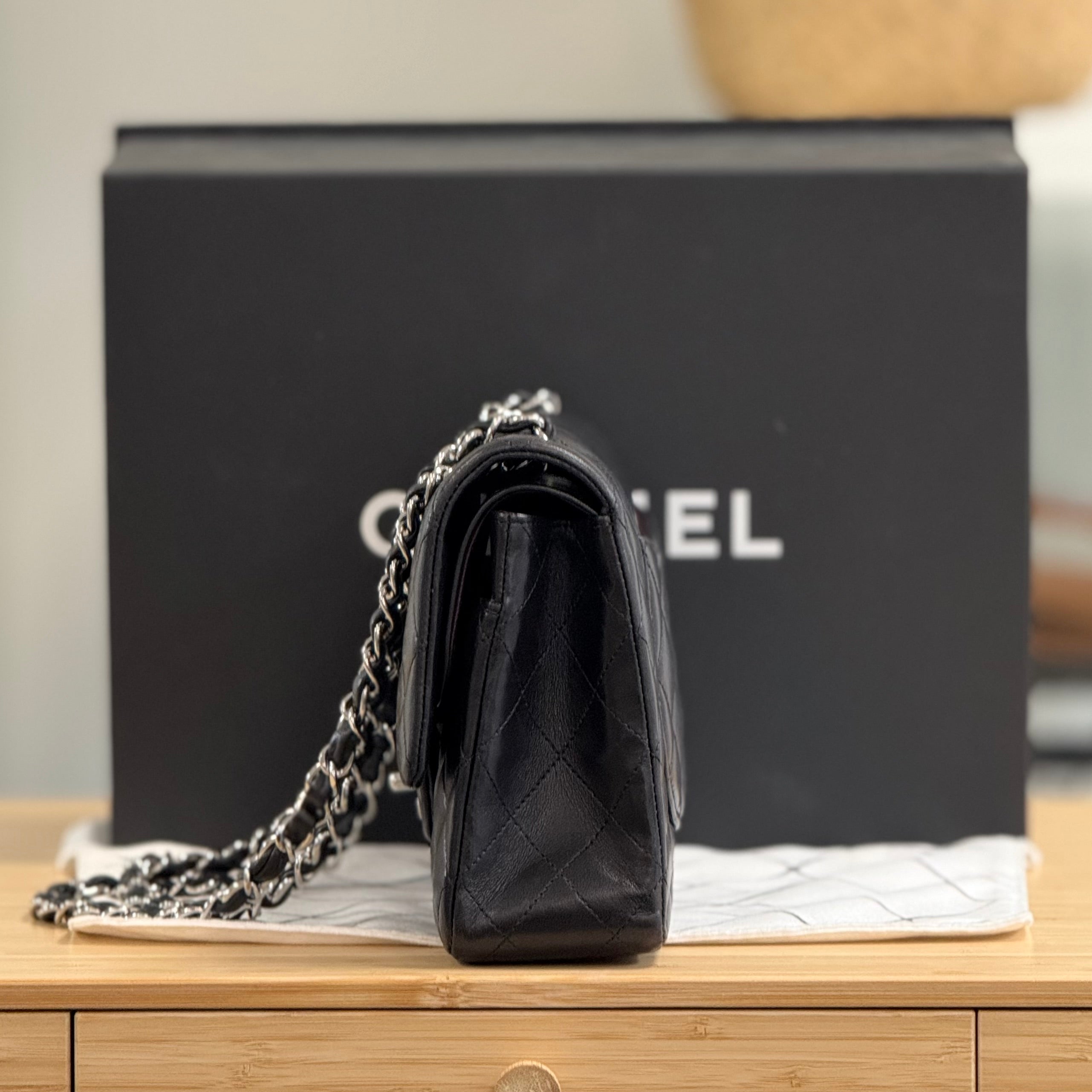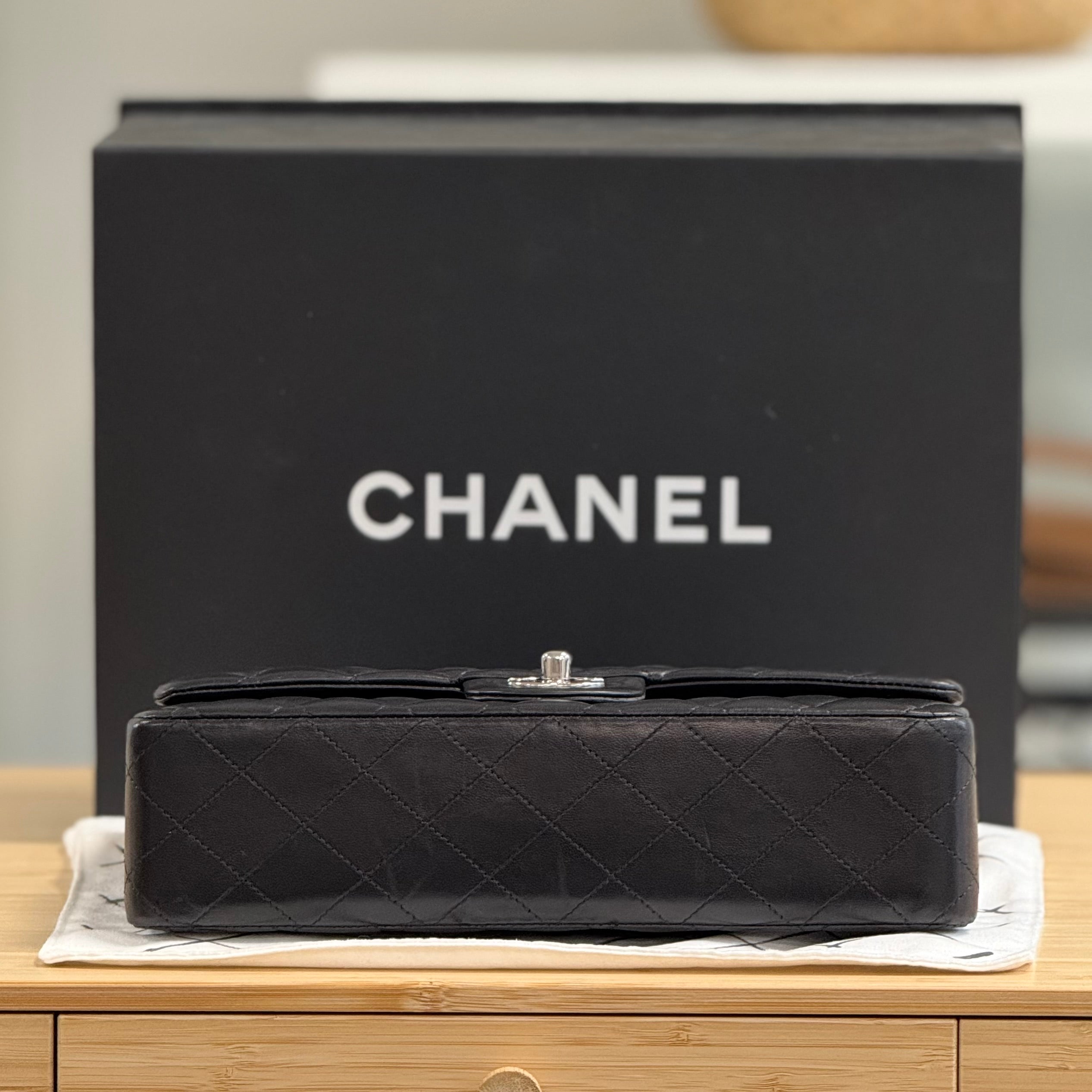 Included: Chanel paper bag, Chanel box, Chanel dustbag, Camelia flower (broken), Chanel envelope, Chanel authenticity card, felt covers, Chanel booklet, Chanel care guide, Chanel dust cloth, Chanel envelope, Chanel ribbon