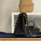 Description: This Chanel Maxi Single Flap has a leather/chain strap. It has a flap closure with CC turncock fasten. Inside there is one large main compartment, a flat pocket and a zipped pocket. It is a 3 series Chanel so it is from 1994-96.