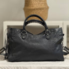 Description: This Balenciaga City has double top handles and a removable & adjustable strap. It has 1 zipped front pocket with the Balenciaga mirror. It has a zip top closure. Inside it has 1 zipped pocket and 2 small pockets.