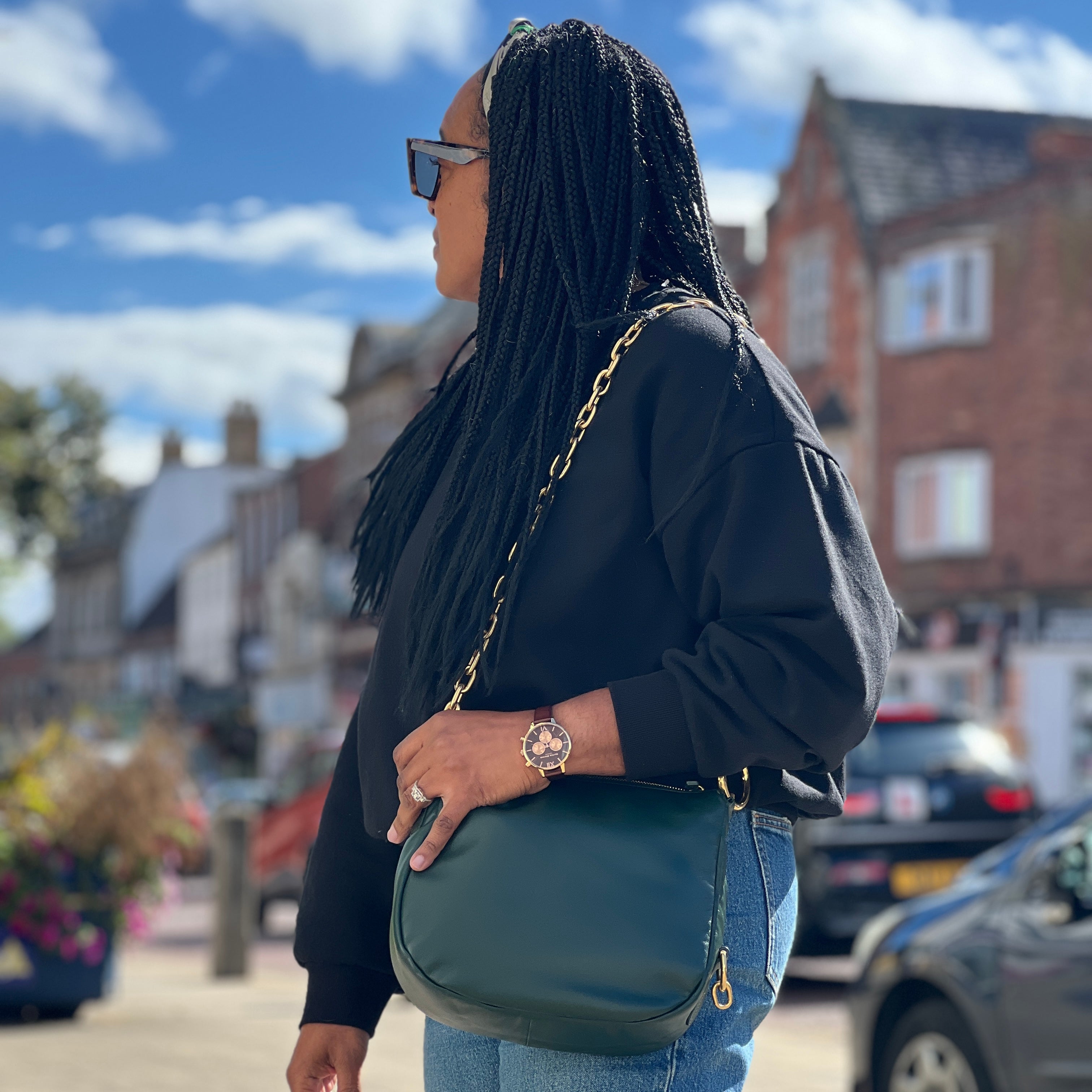 Fabric: Exterior-leather. Interior-leather. Strap-chain