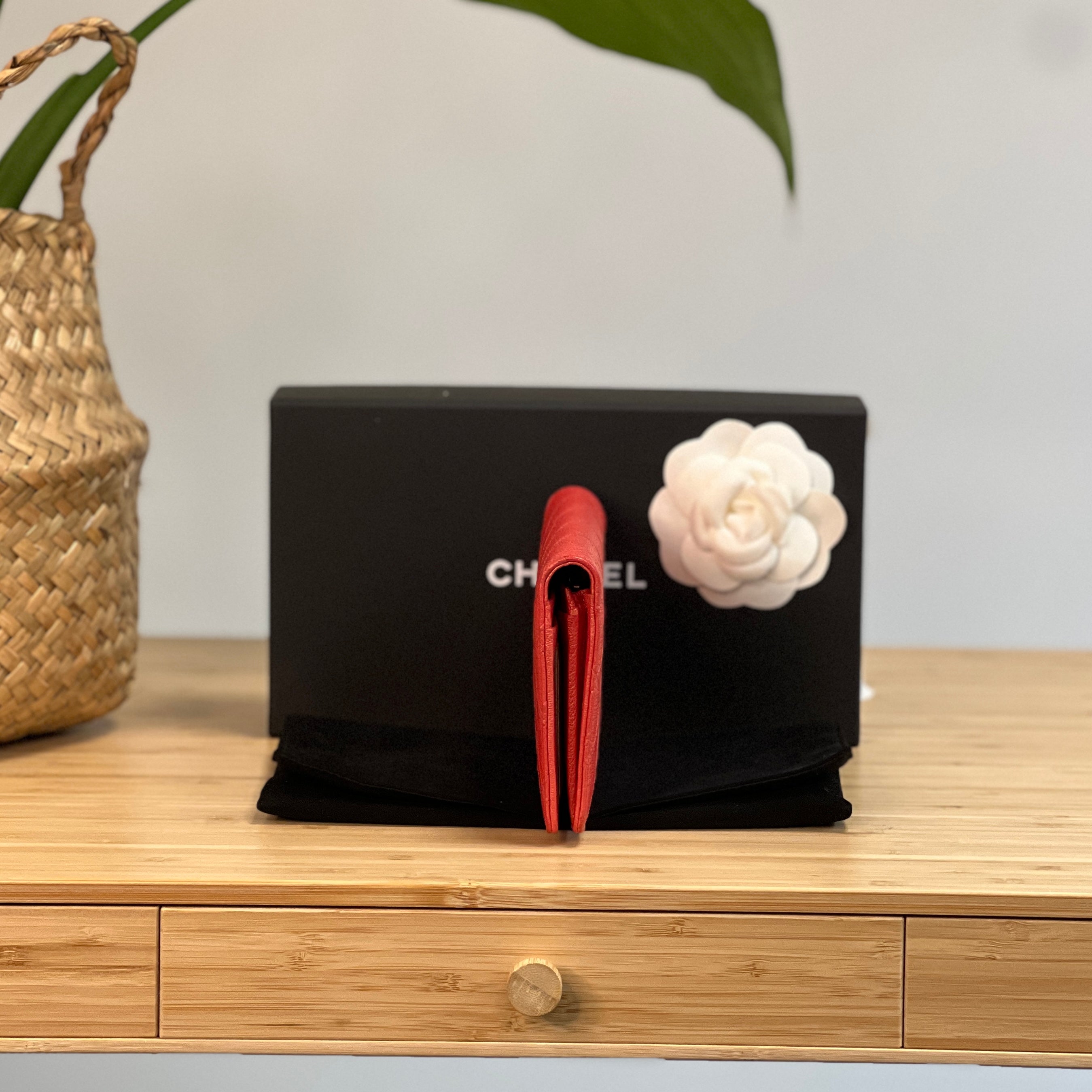 Included: Chanel box, Chanel dustbag, Chanel ribbon, Chanel authenticity card, Chanel envelope, Chanel care guide x2, Chanel invoice, Camelia flower