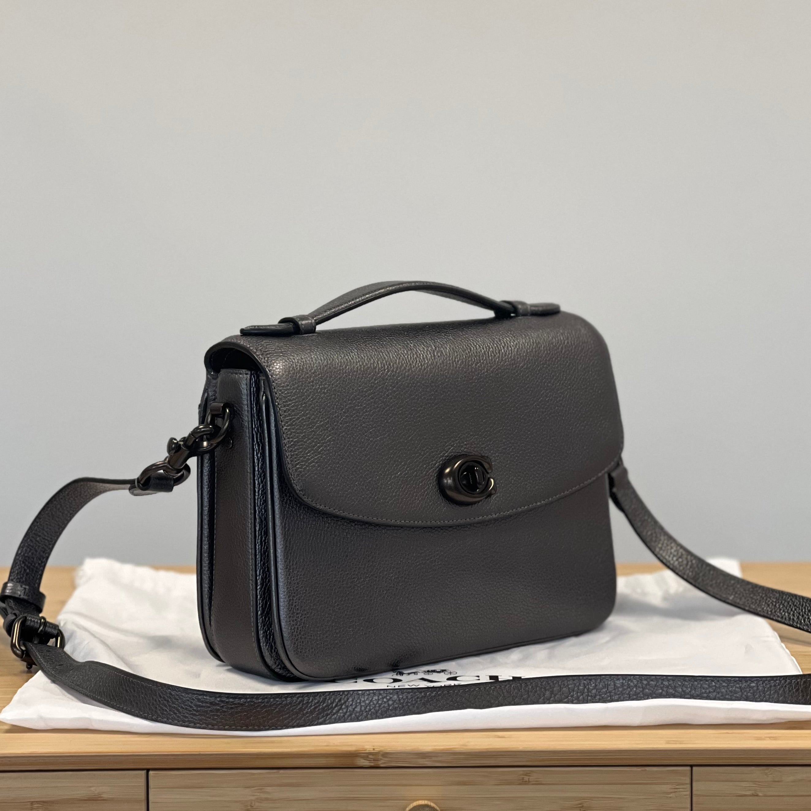 Description: This Coach Cassie Crossbody has 1 top handle and 1 removable & adjustable strap. It has 1 external flat pocket on the back. It has a flap closure with turn lock fasten. Inside it has 3 sections, the middle section has 1 zipped pocket and 1 flat pocket.