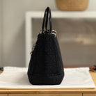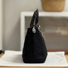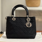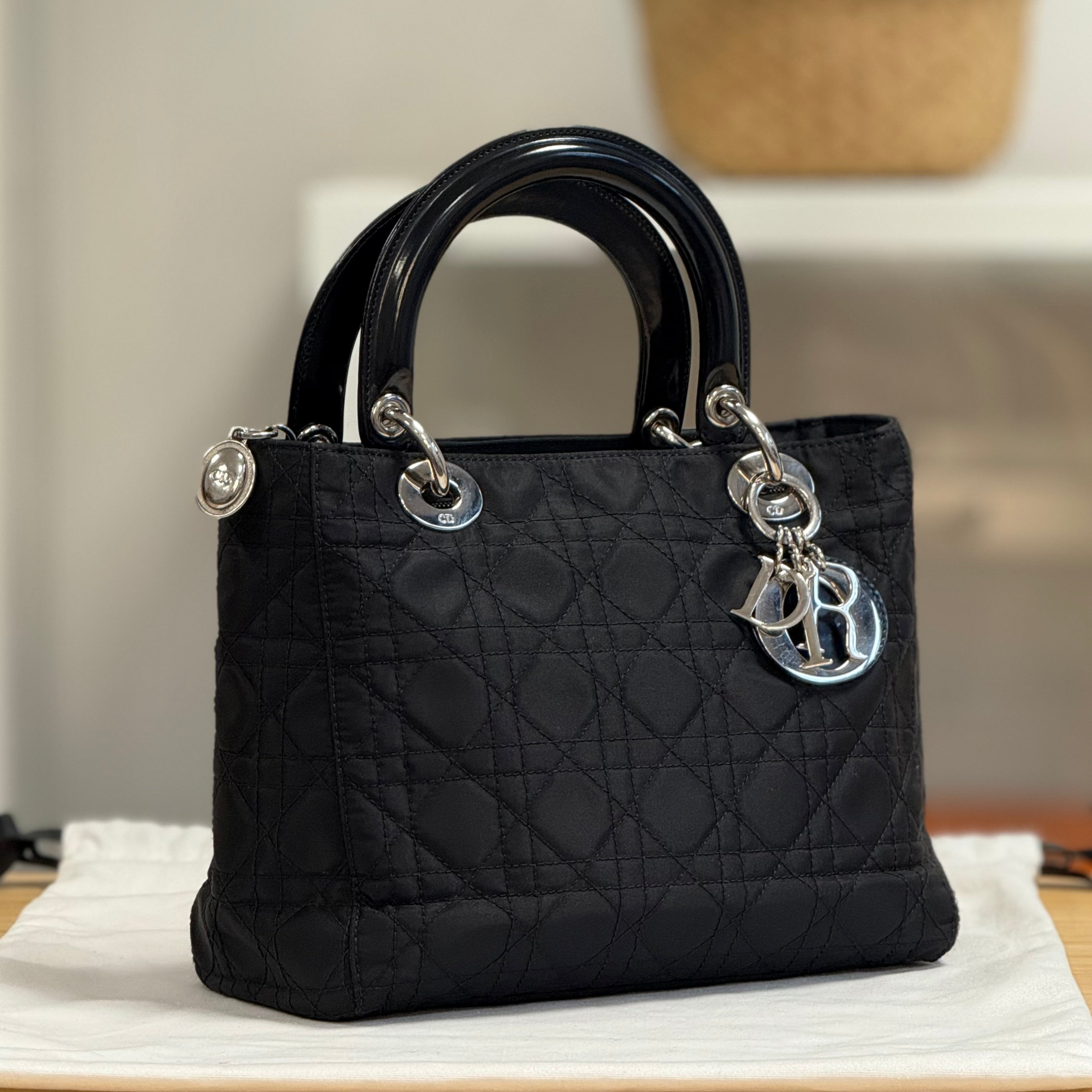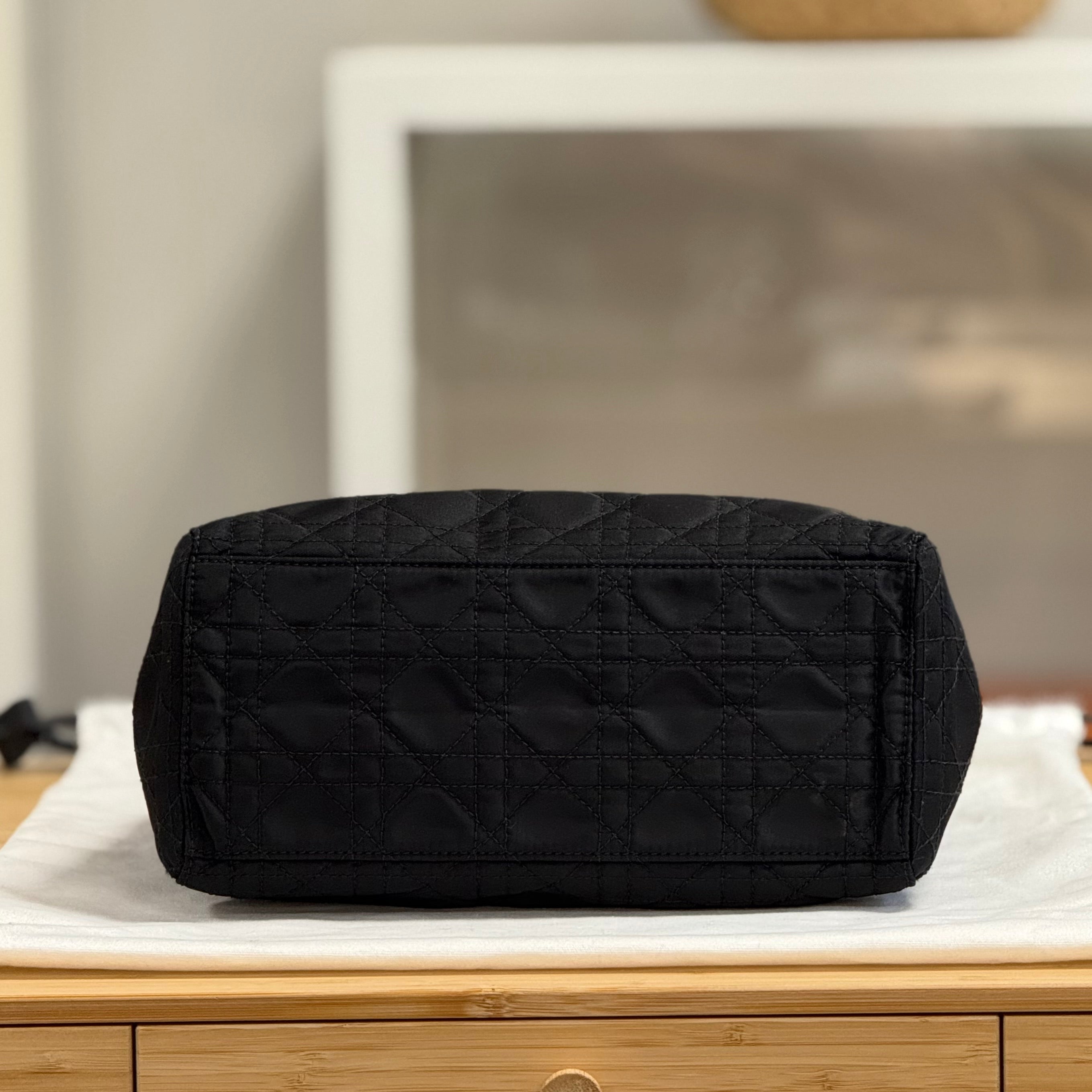 Description: This Lady Dior has double top handles and a zip-top closure. Inside there is 1 zipped pocket. The date code is RU0051.