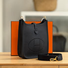 Description: This Hermès Evelyne in size 16 has a removable strap. It has a belt fasten with a press stud. Inside there is one main compartment. The date code is K without a shape so it is from 2025.