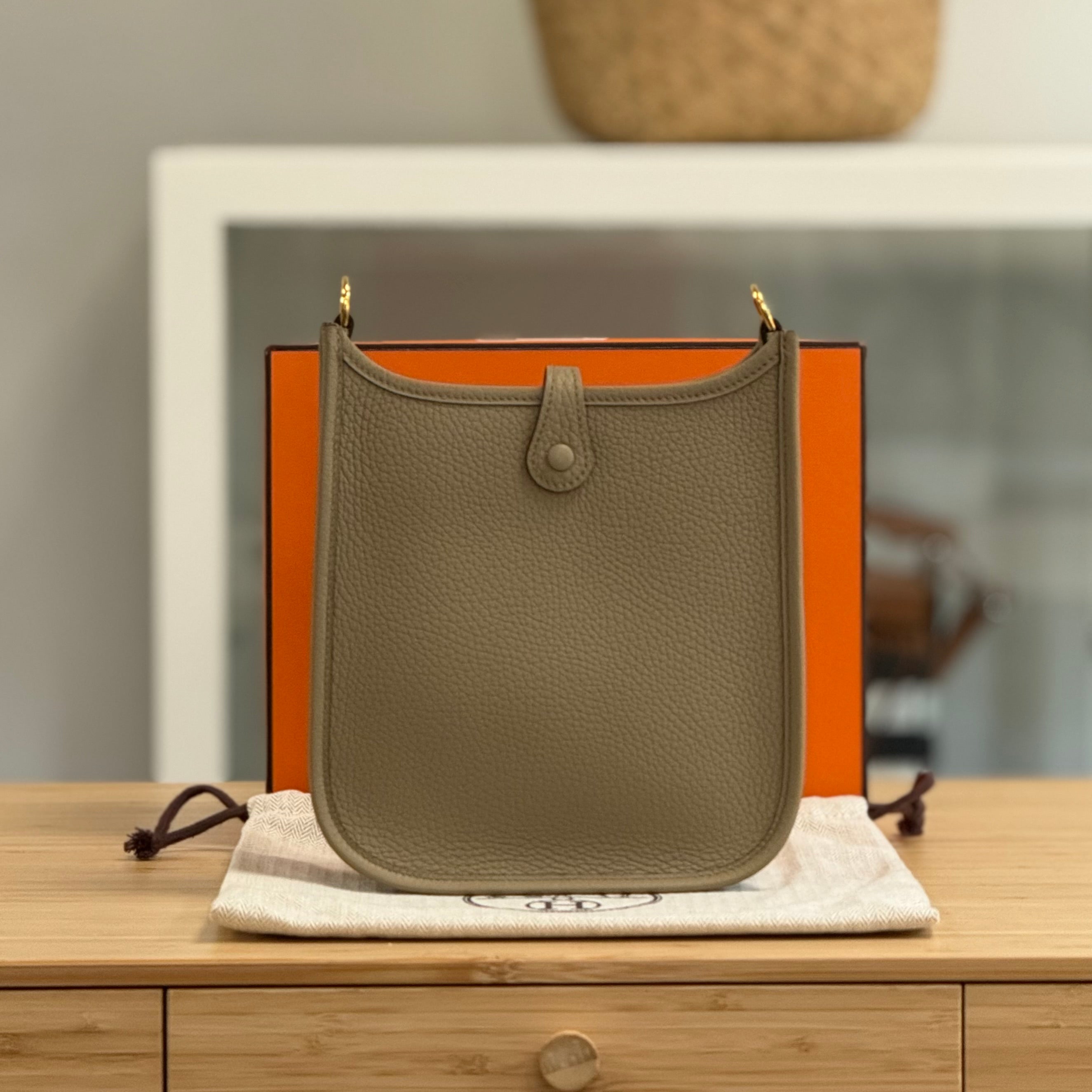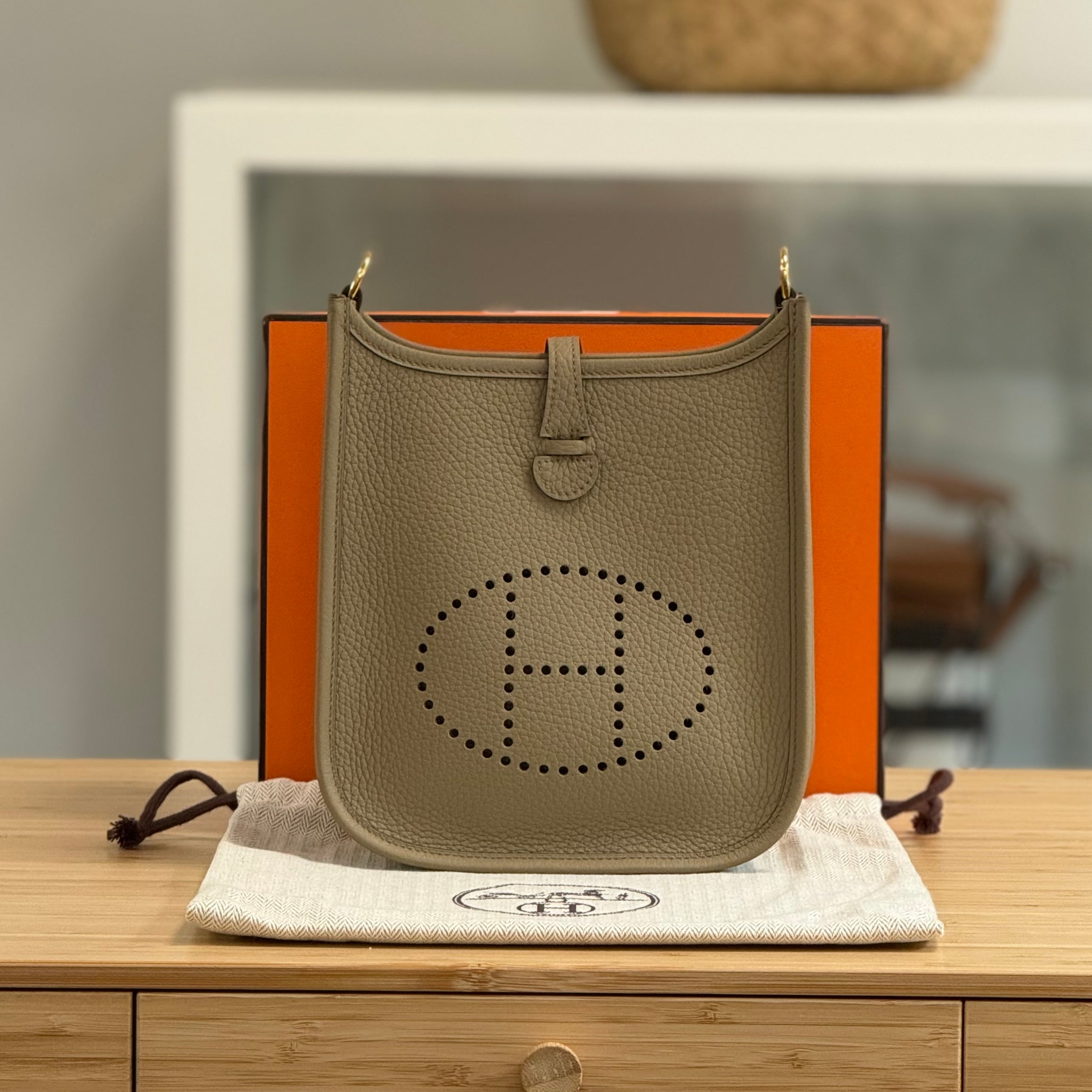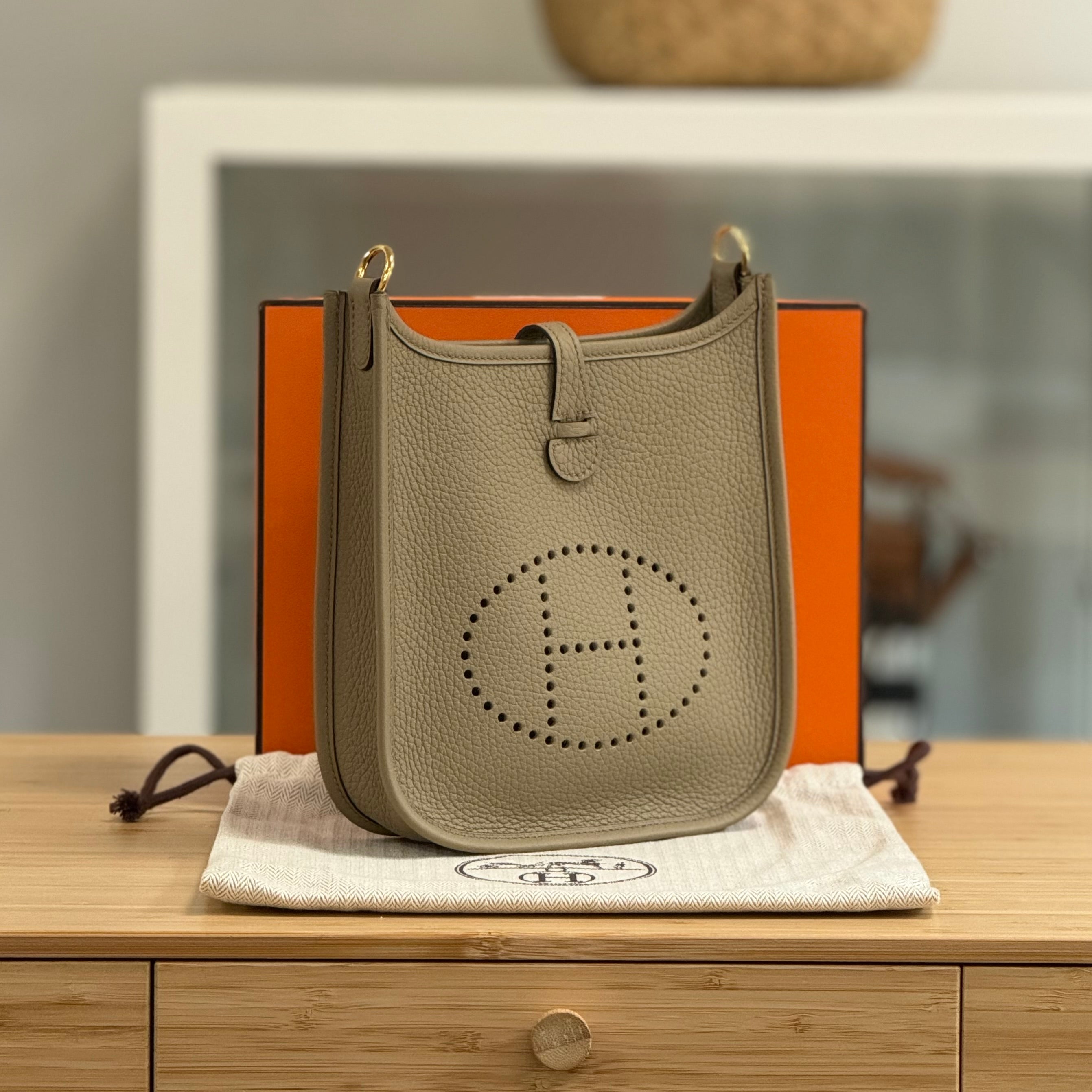 Description: This Hermès Evelyne TPM has a removable strap and a press-stud belt fasten. The blind stamp is ‘W’ with no surrounding shape, so it is from 2024.