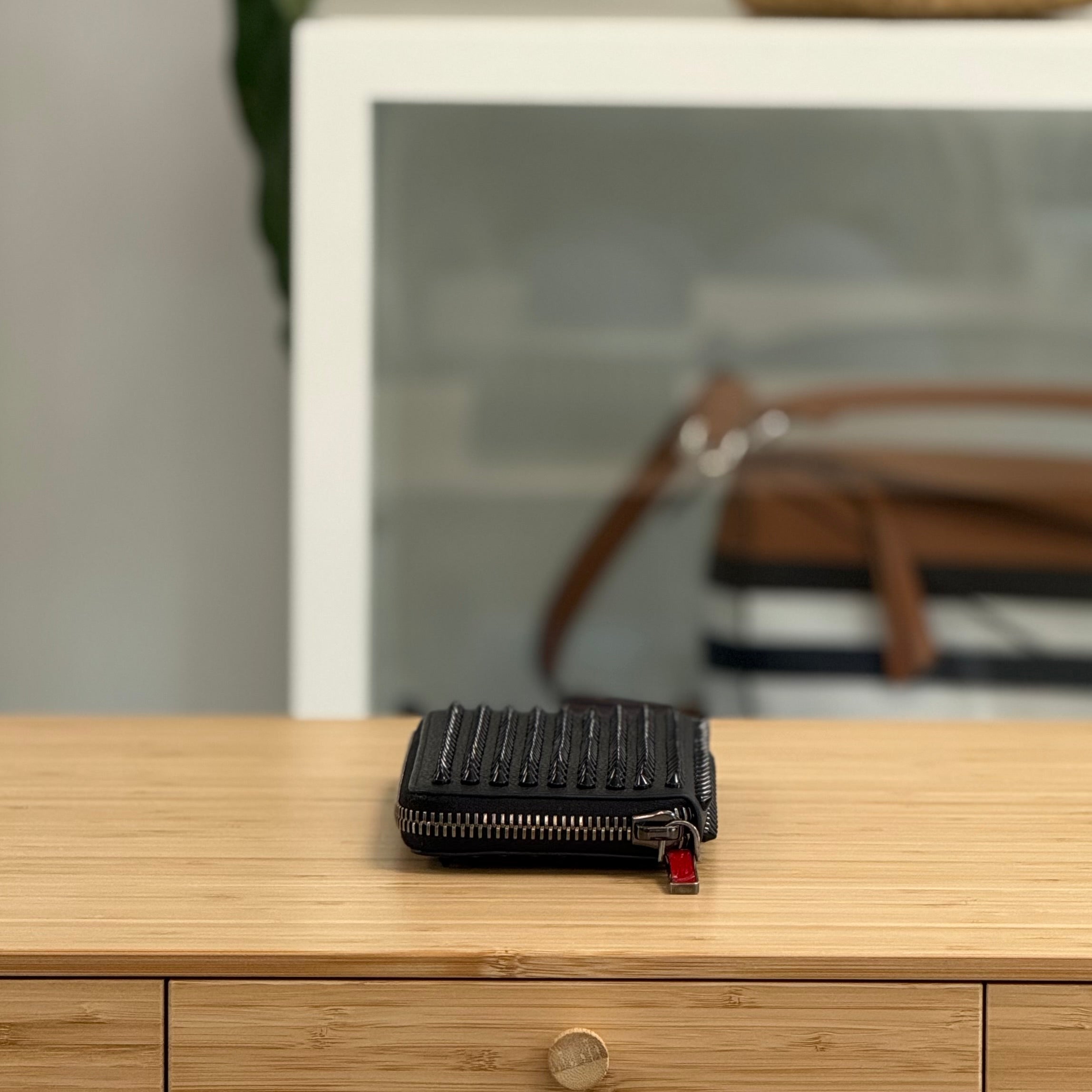 Description: This Louboutin Pannetone Wallet has a zip-around closure. Inside there are 2 notes pockets, 12 card slots and 1 zipped pocket.