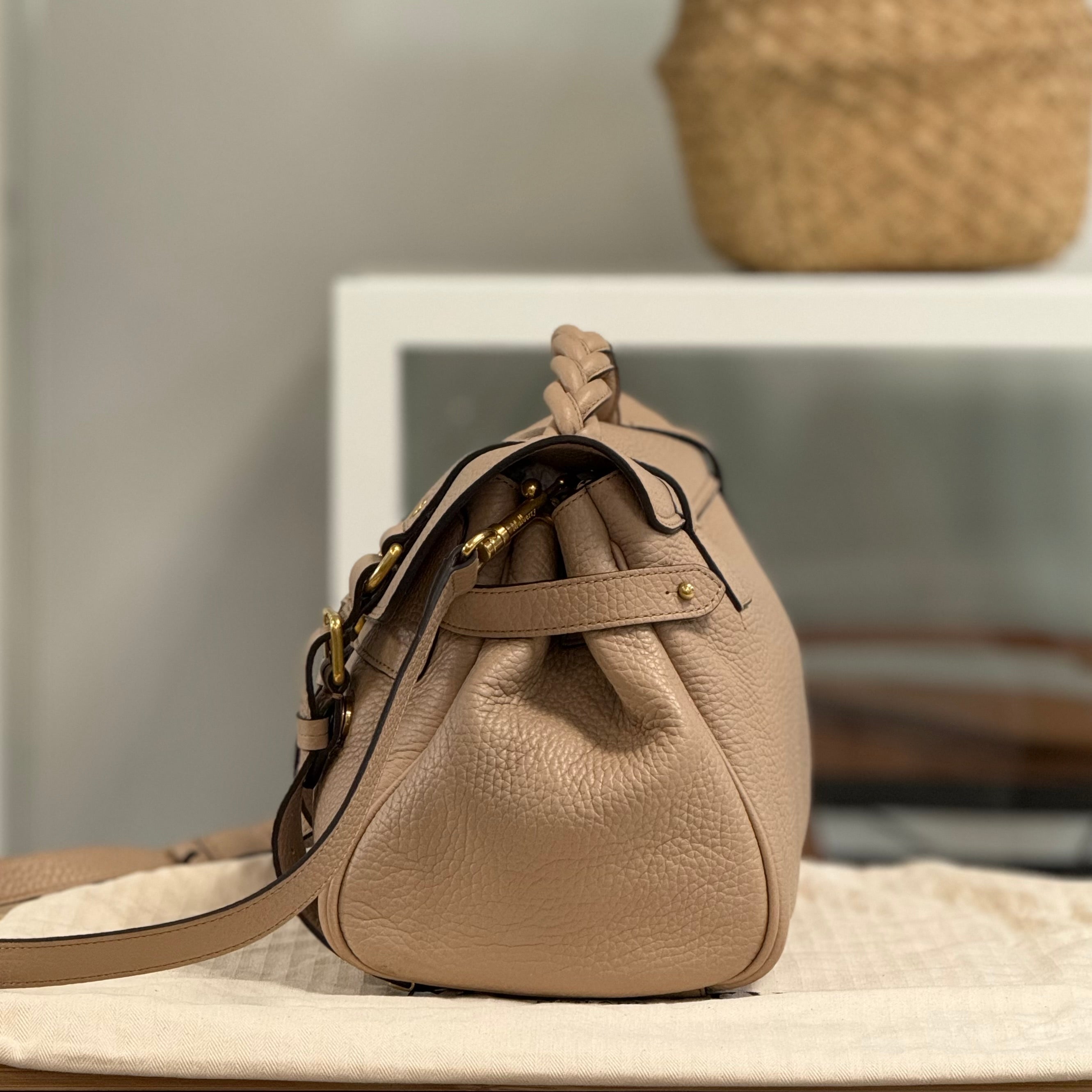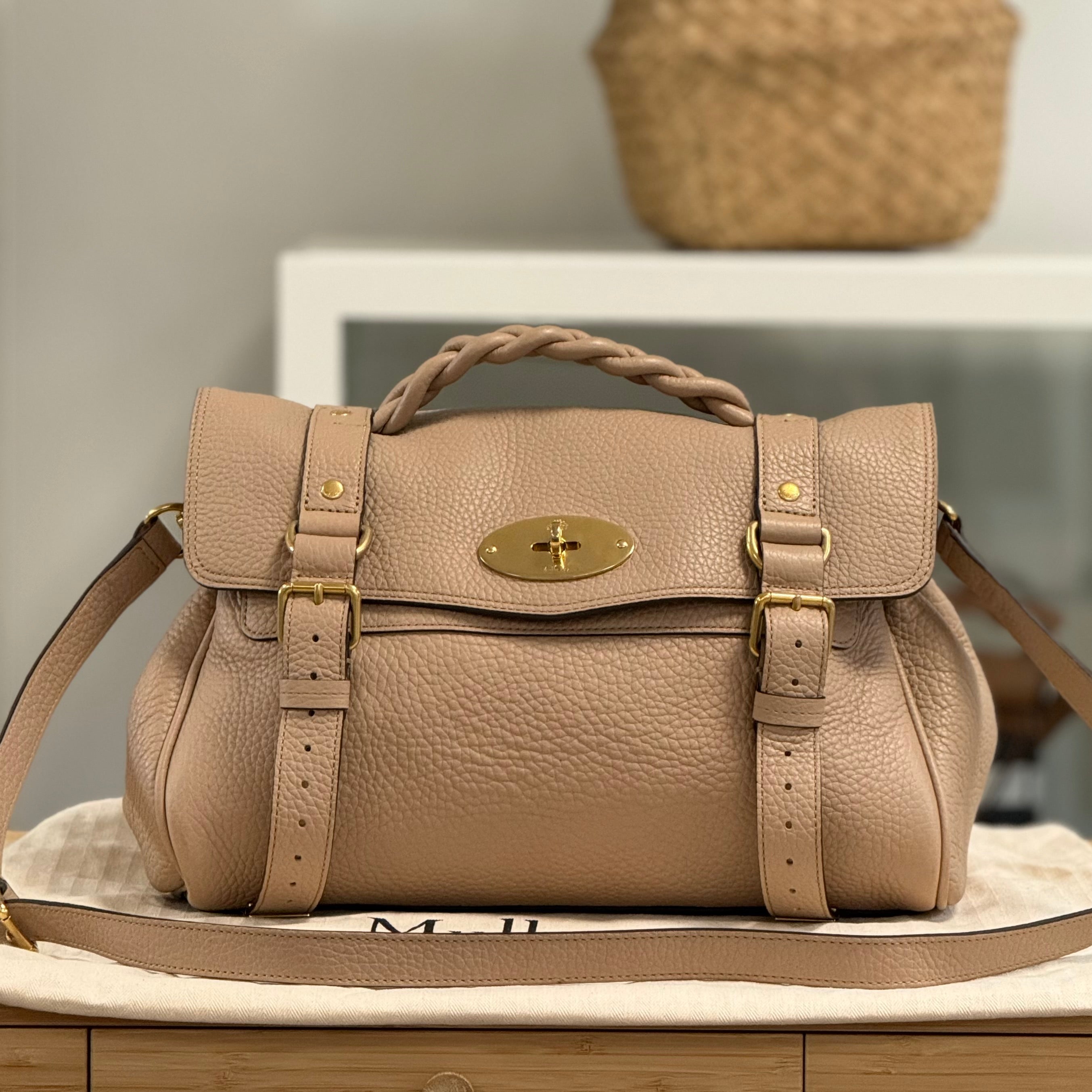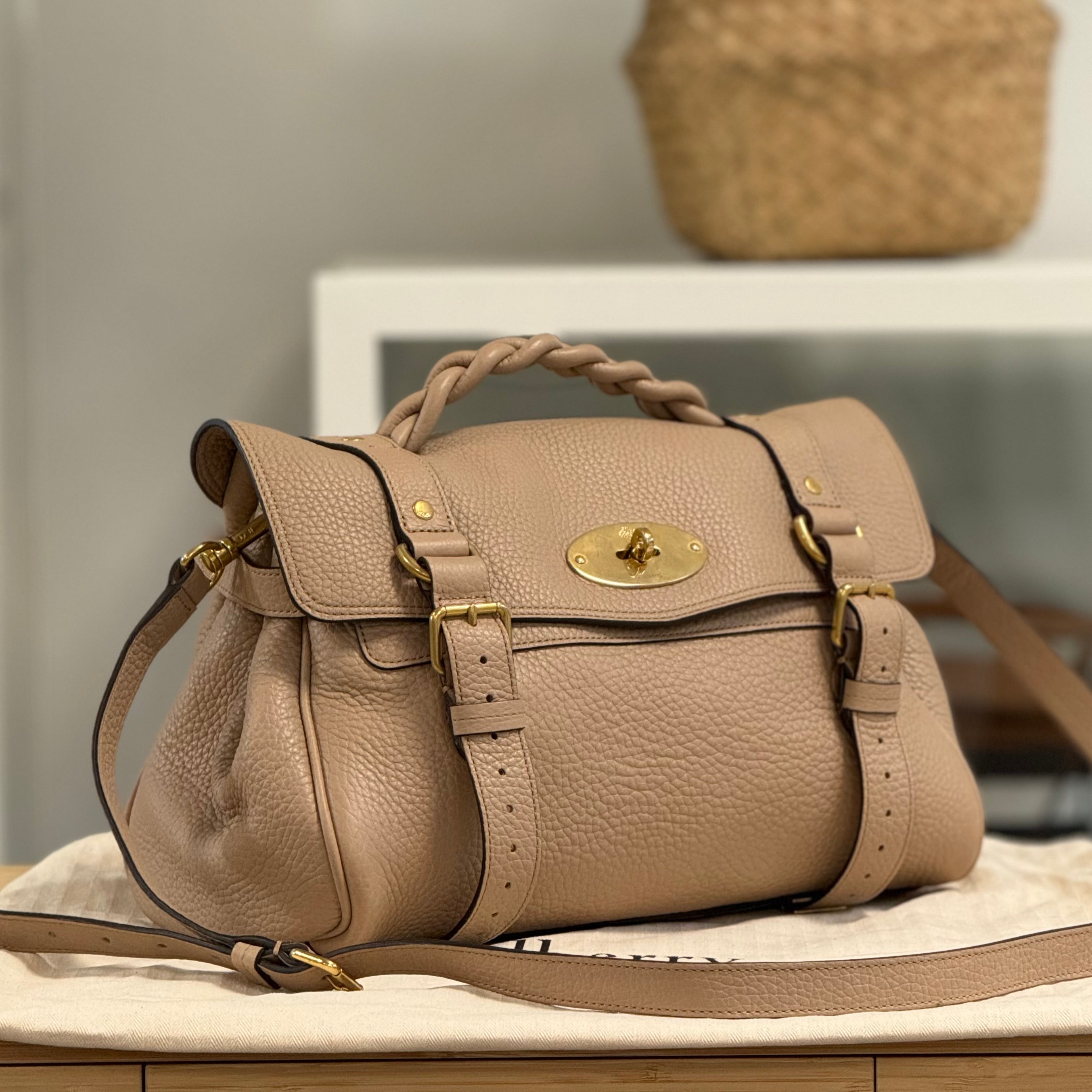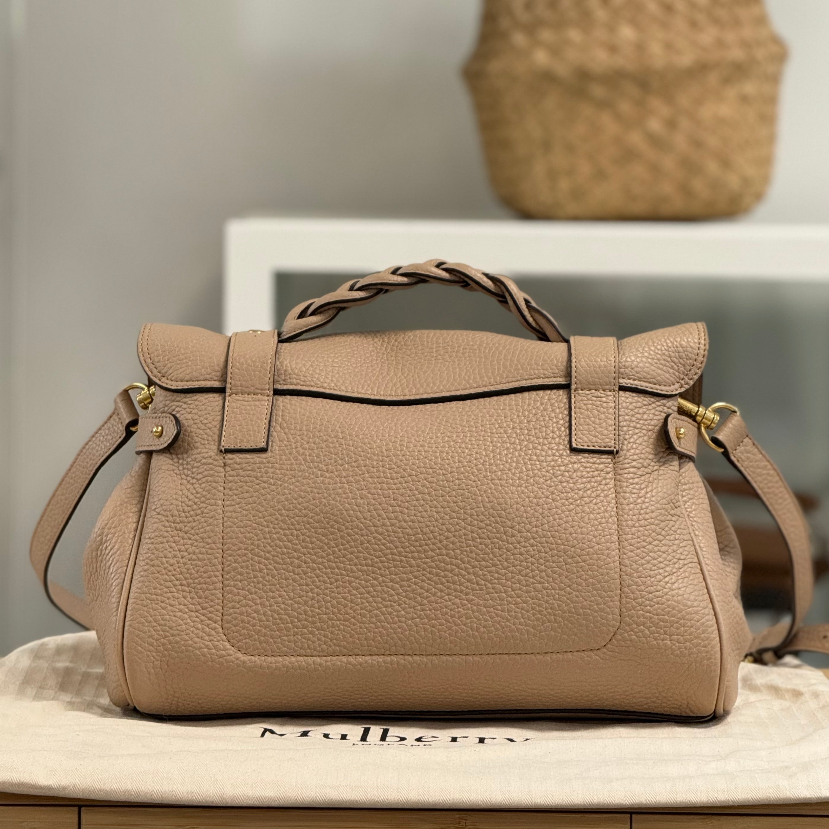 Description: This Mulberry Alexa has 1 braided top handle and a removable & adjustable strap. It has a flap closure with a postman’s lock fasten and 2 magnetic press stud fastens. Inside it has 1 flat pocket.