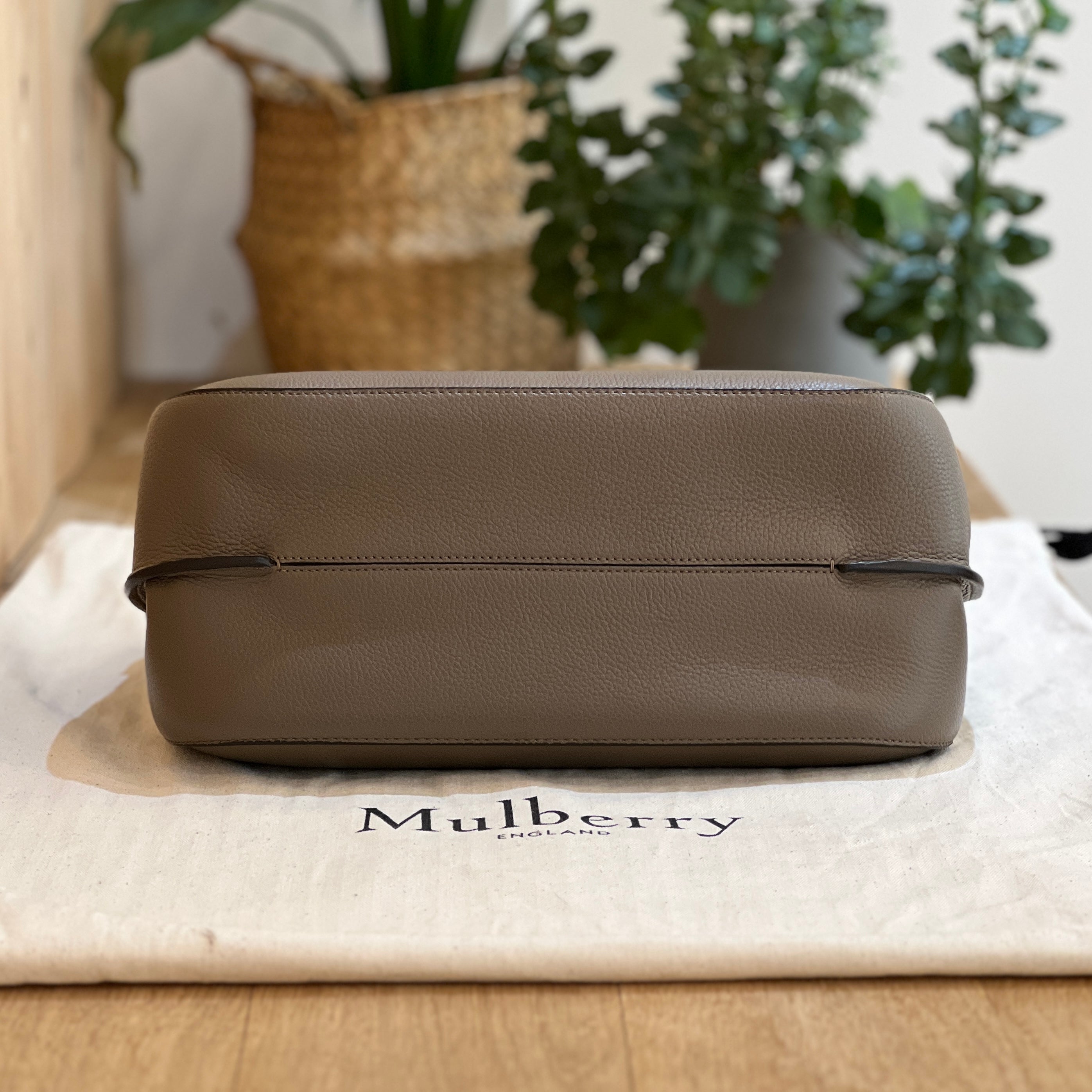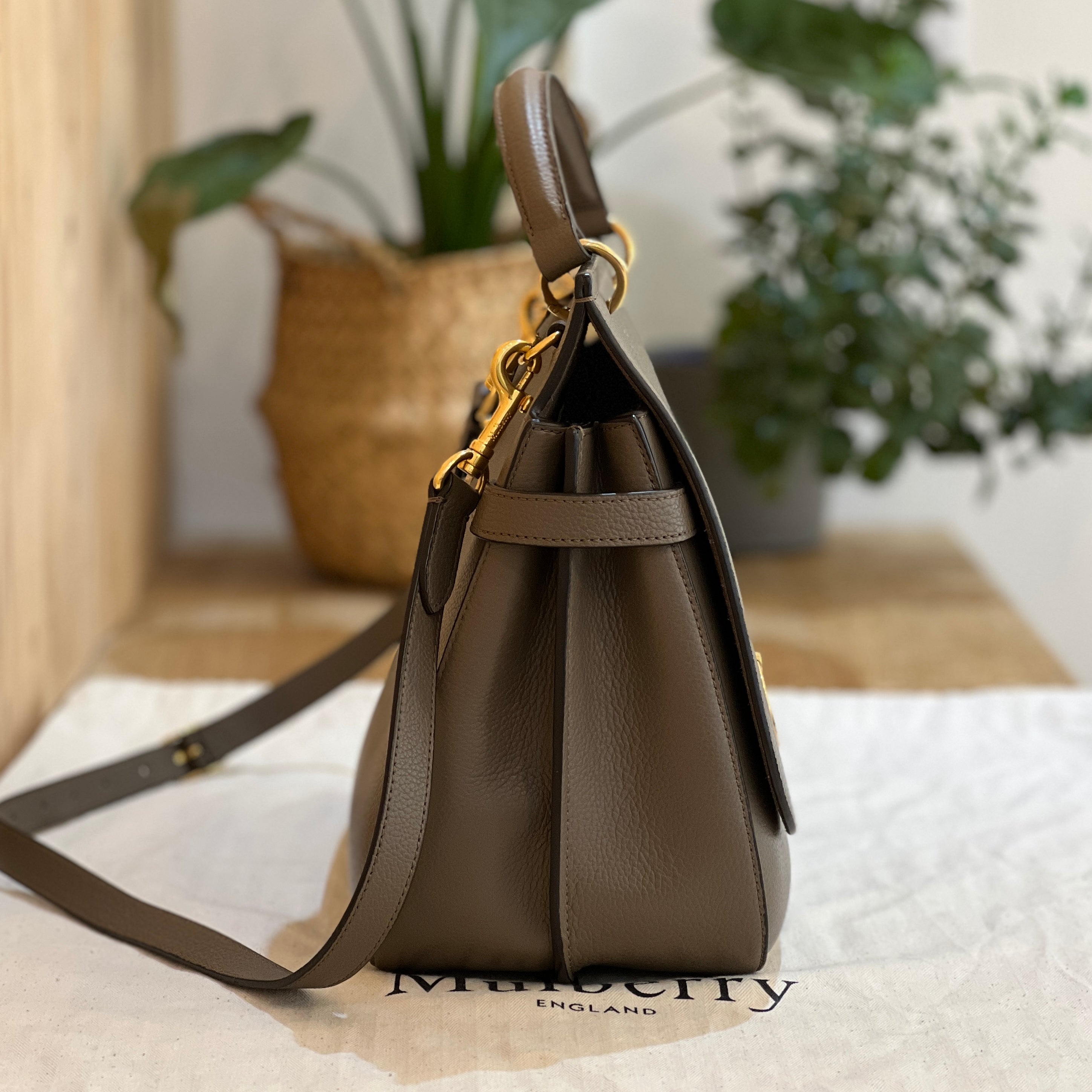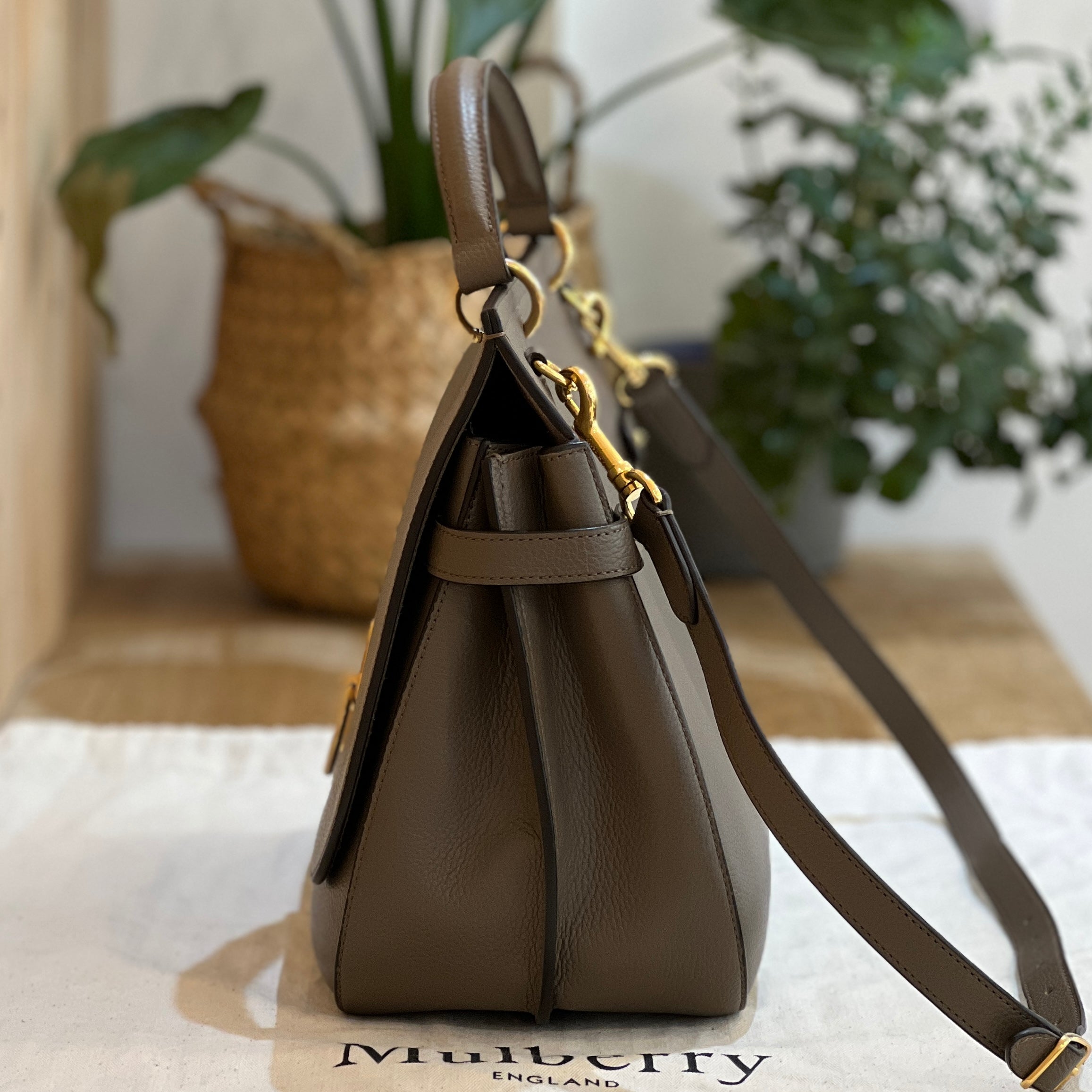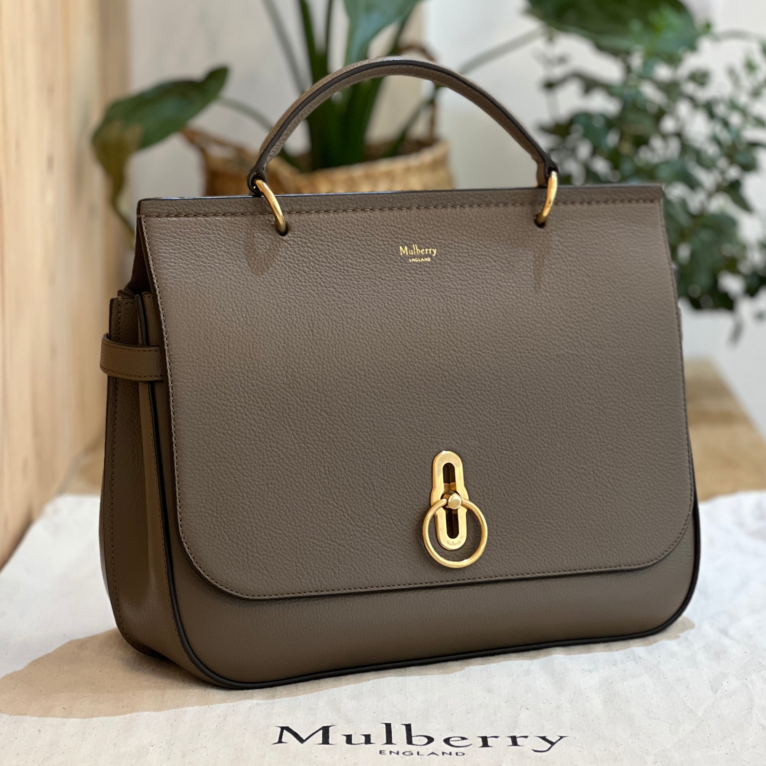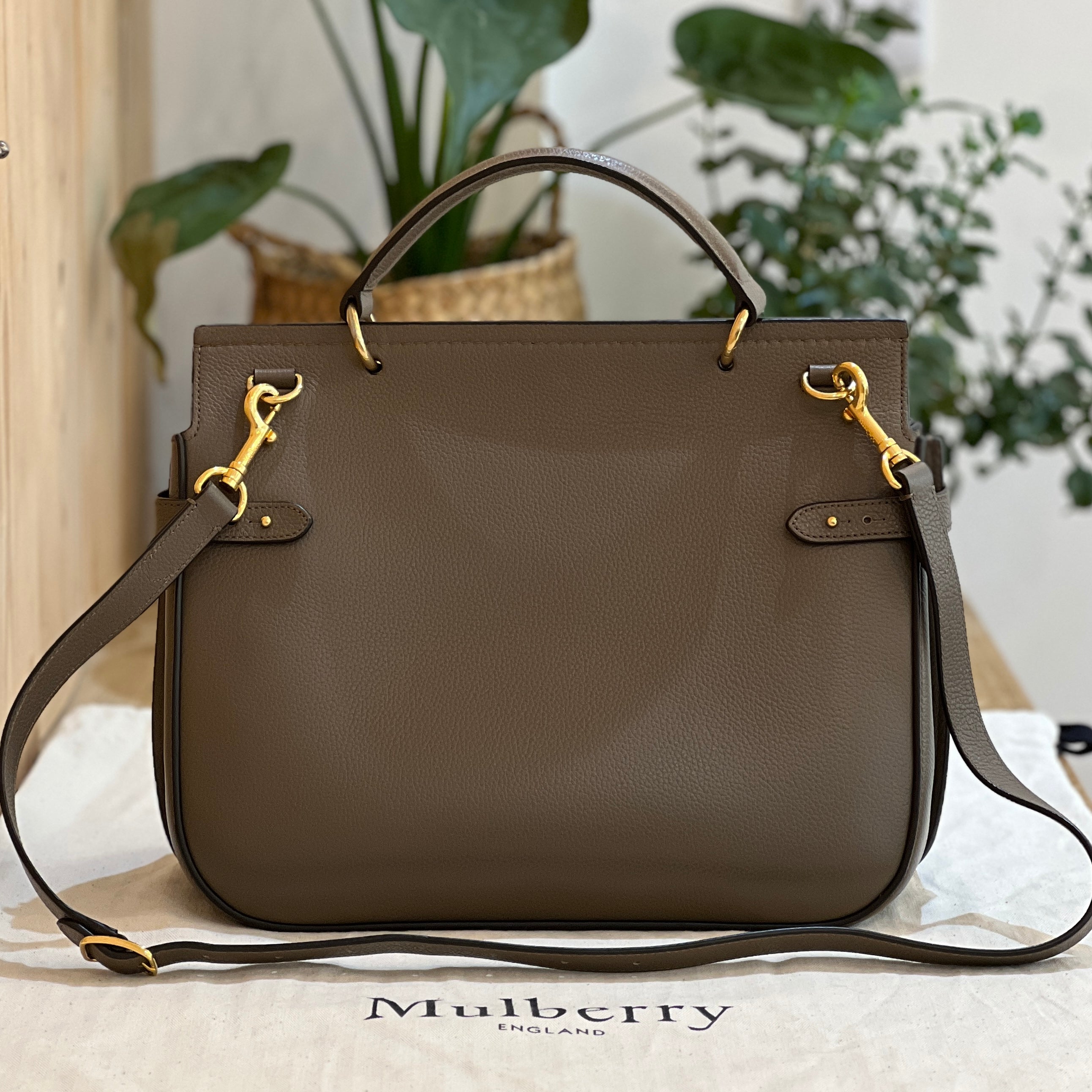 Description: This Mulberry Amberley has an adjustable and removable strap, a top handle, and a flap closure with Mulberry Rider’s lock. Inside there is 1 zipped pocket and 1 flat pocket.
