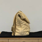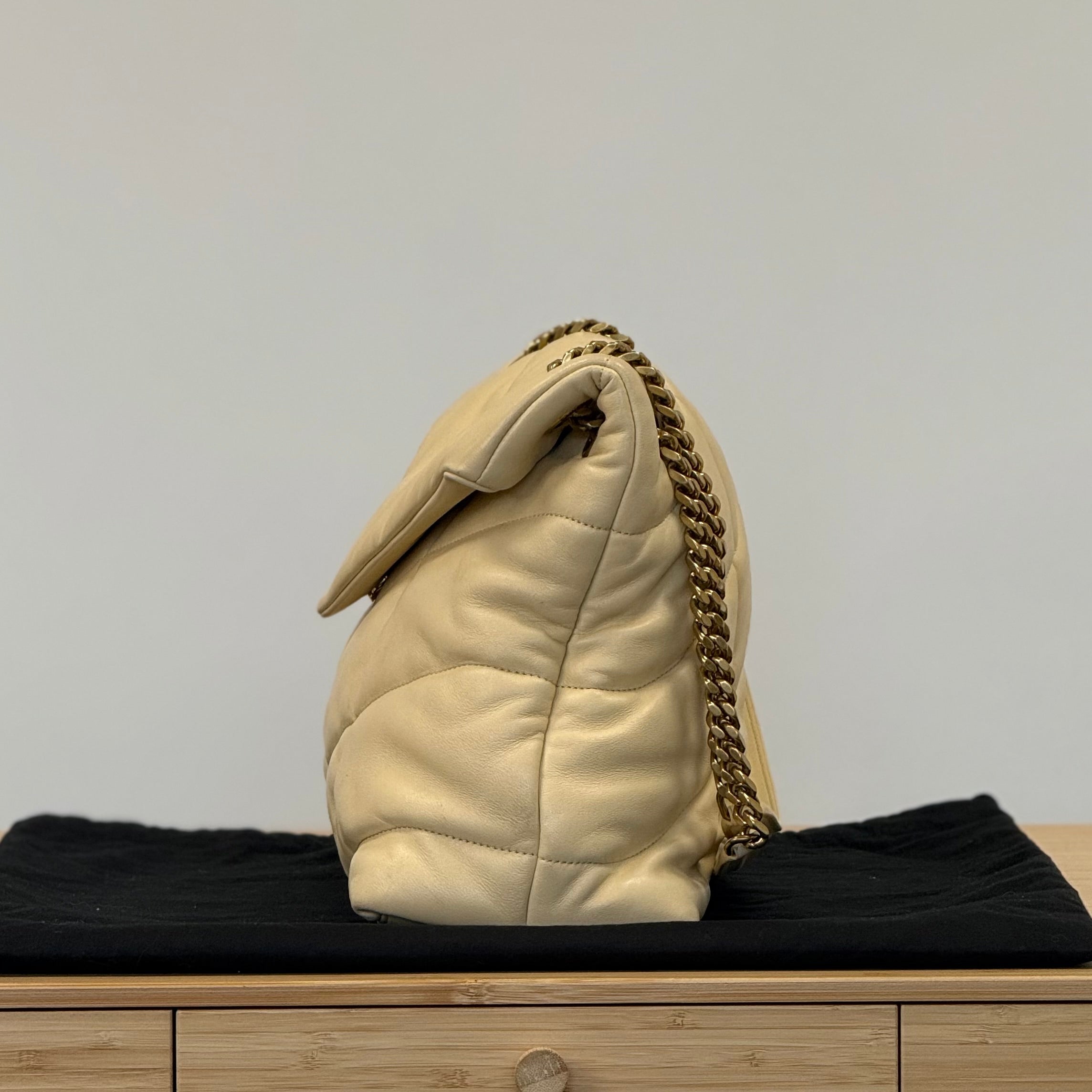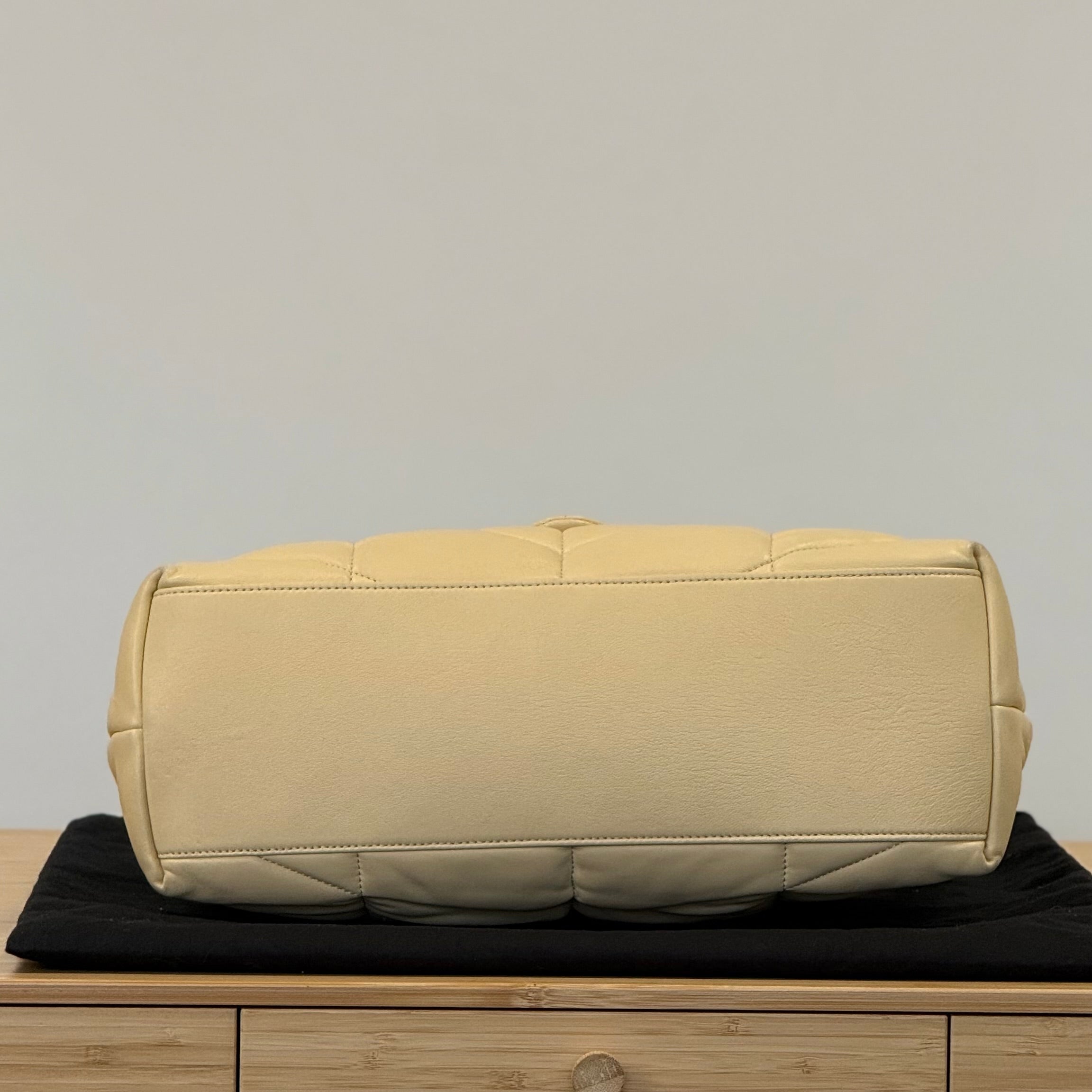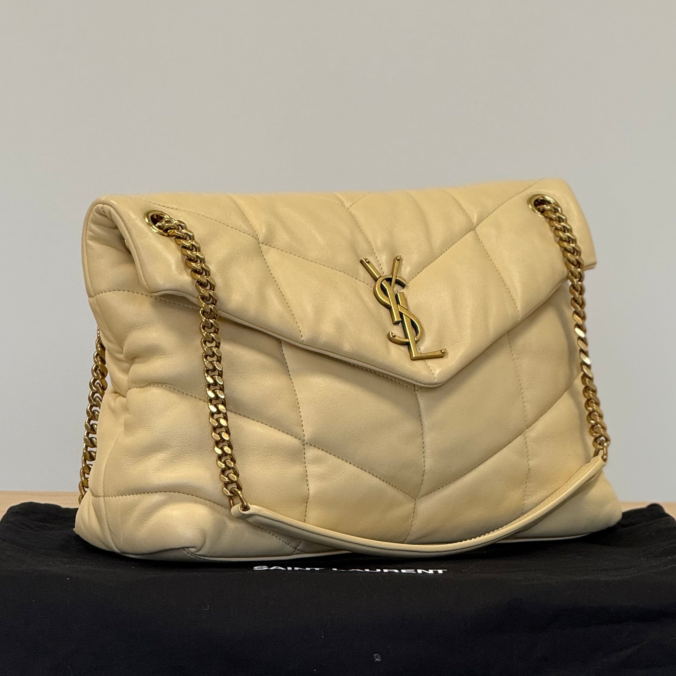 Description: This Saint Laurent Puffer in size medium has an adjustable strap. It has a magnetic press stud flap closure. Inside there is a zipped pocket.