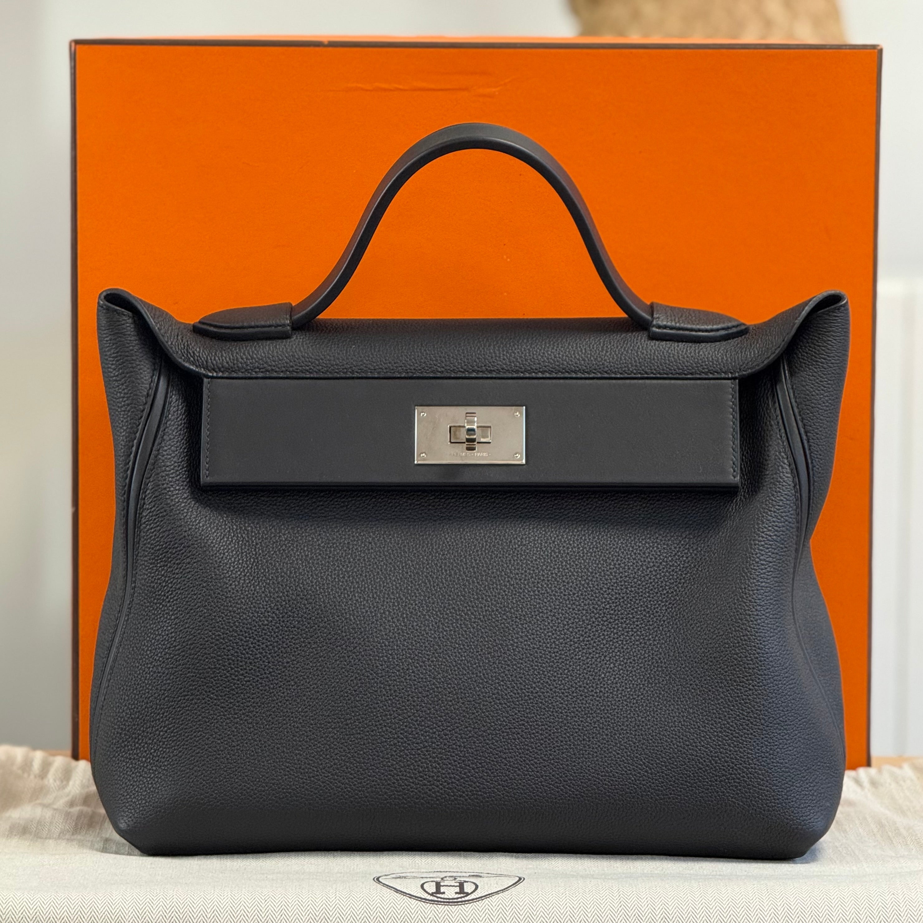 Included: Hermès box, Hermès dustbag, felt protection, handbag liner, Hermès ribbon, Hermès envelope, Hermès care guide, Hermès returns info, Hermès receipt
