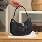 Fabric: Exterior-croc-embossed leather. Interior-suede. Strap-croc-embossed leather