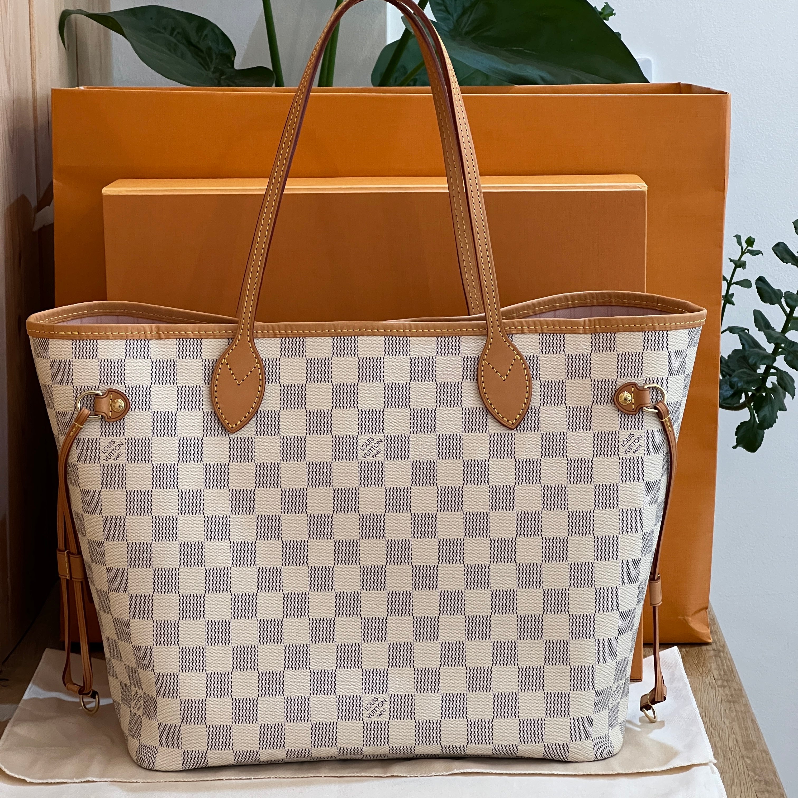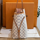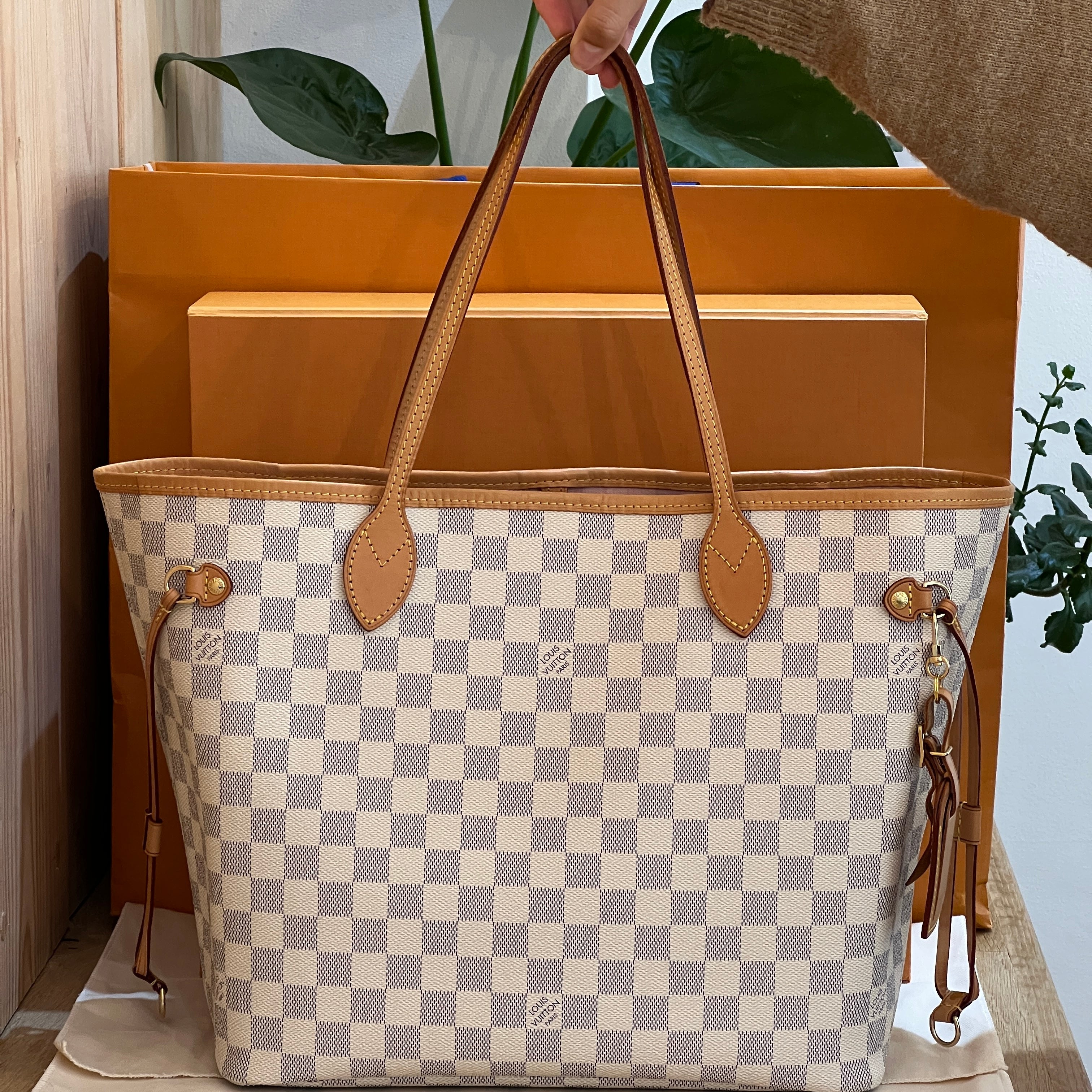 Description: This Louis Vuitton Neverfull MM has double top handles, and two adjustable side laces. Inside there is a clip fasten opening and one zipped pocket.