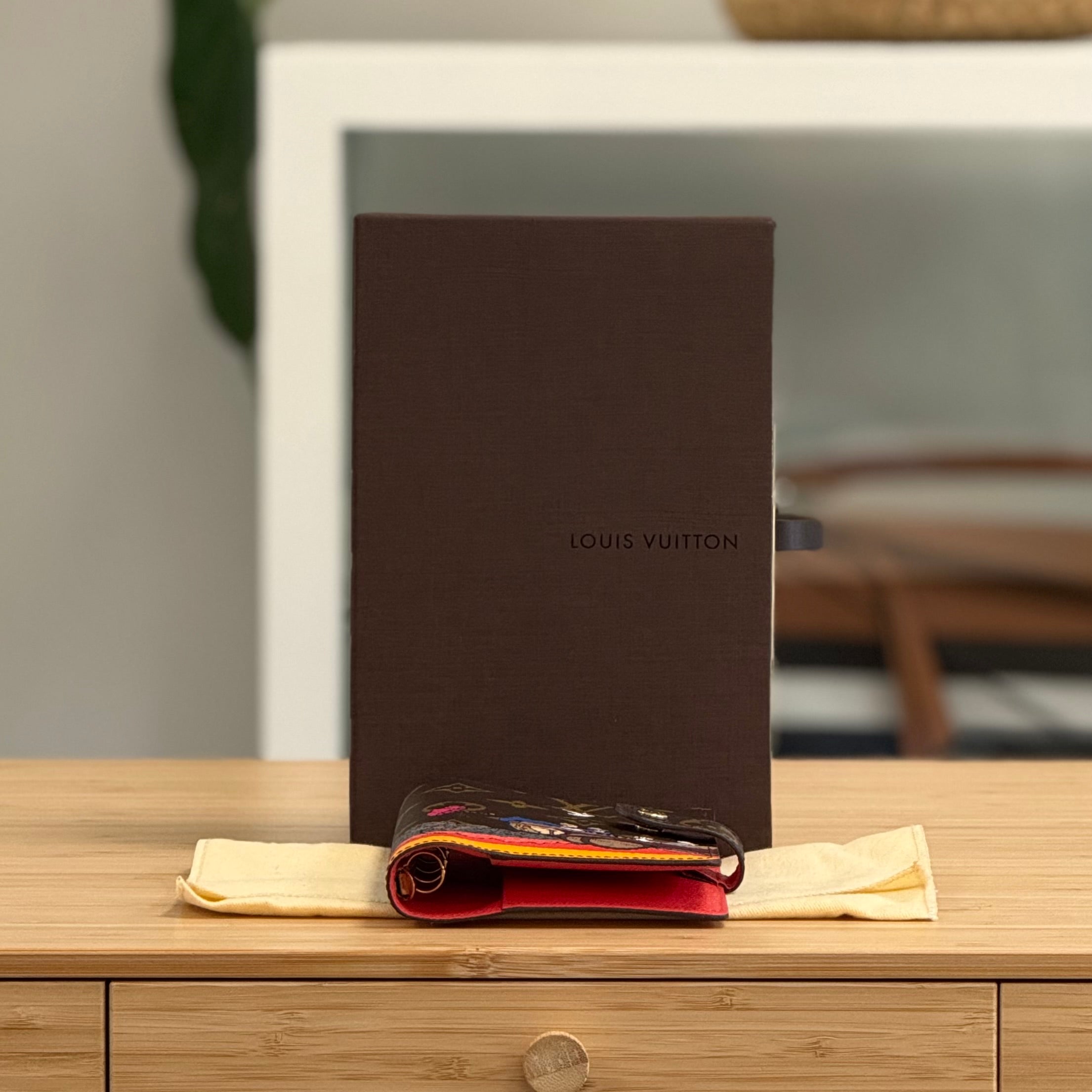 Description: This Louis Vuitton Pocket Agenda Mini has a belt closure with a press stud fasten. Inside it has a ring binder, 3 card slots and 2 flat pockets.