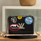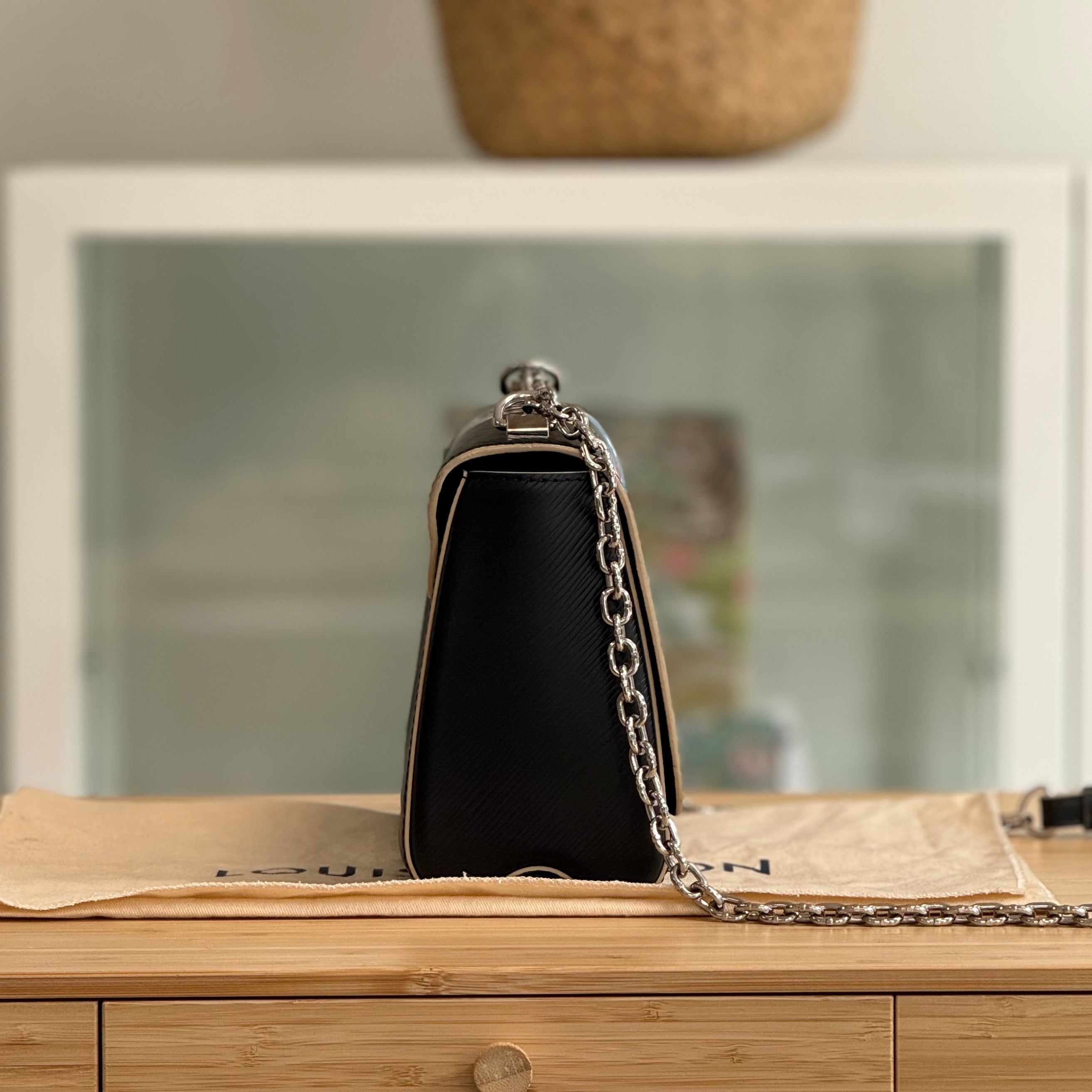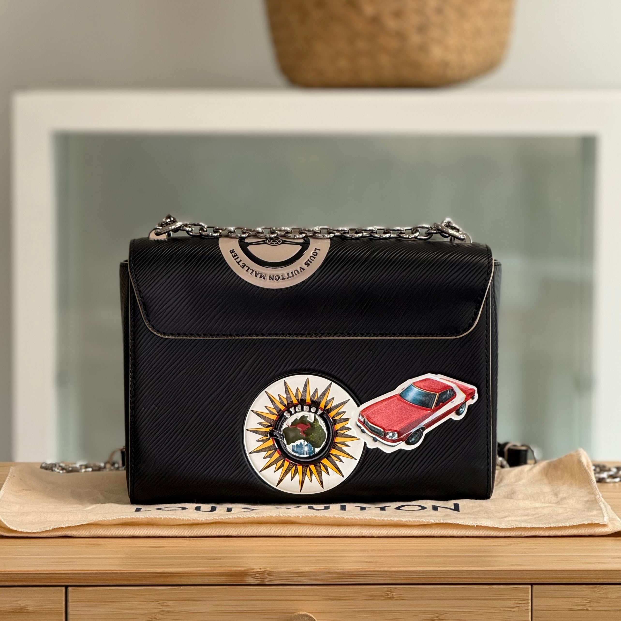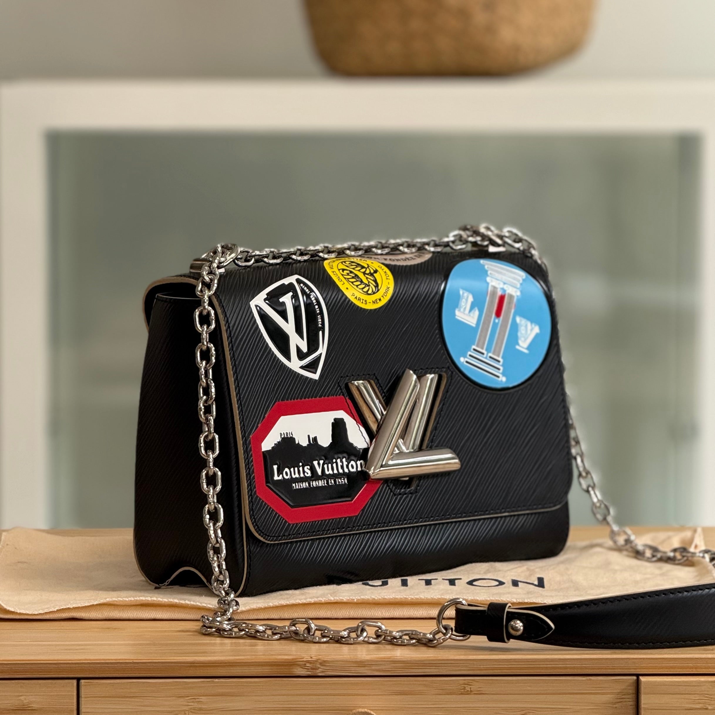 Description: This Louis Vuitton Twist Chain MM World Tour has an adjustable strap and a flap closure with the LV Twist turnlock fasten. Inside there is 1 flat pocket and 1 card slot. The date code is FL2156.