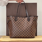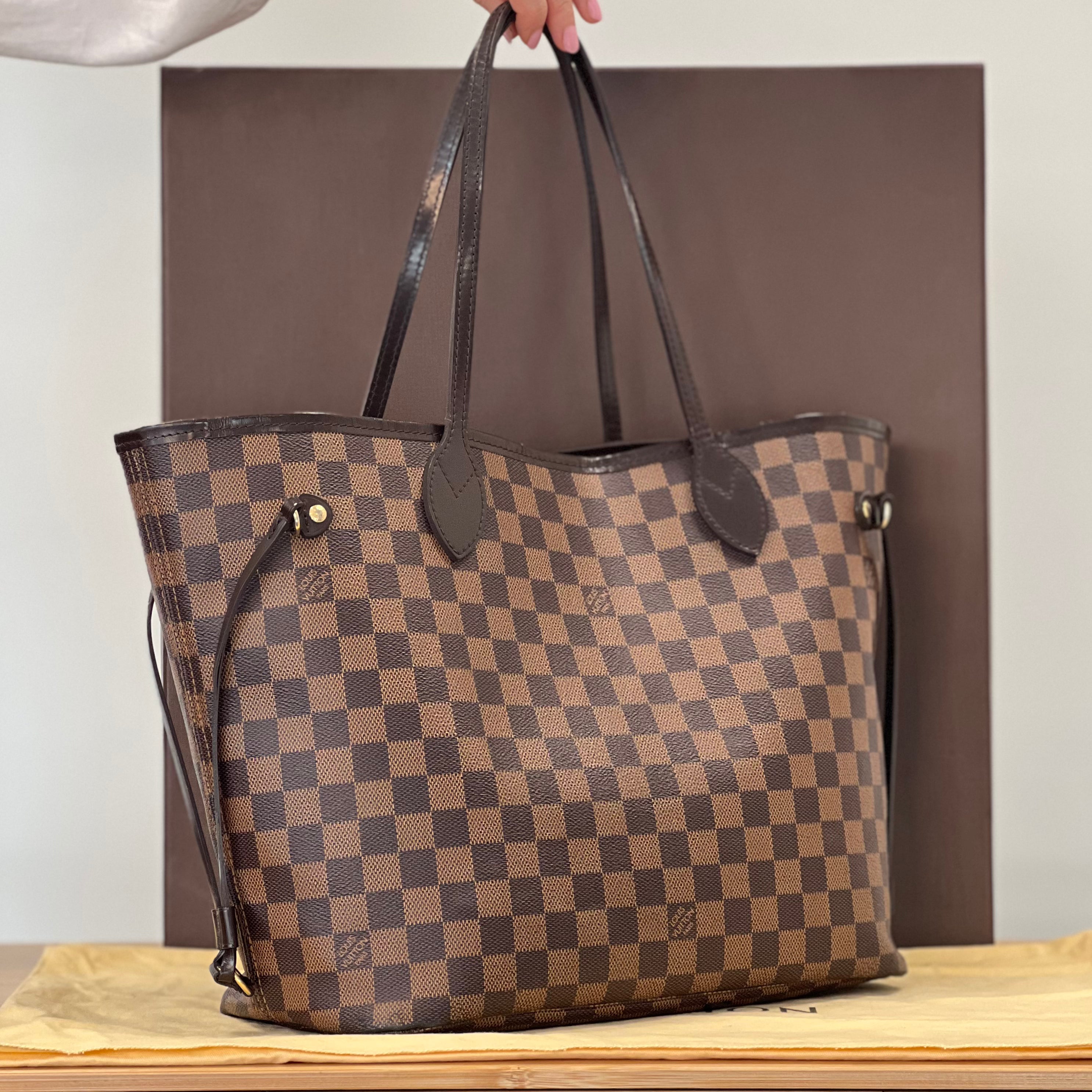 Description: This Louis Vuitton Neverfull in size MM has double top handles and adjustable side laces. It has a clip-fasten. Inside there is 1 zipped pocket. There is also a removable pochette, which has a zip-top closure and 1 flat pocket inside. The date code is GI0186.
