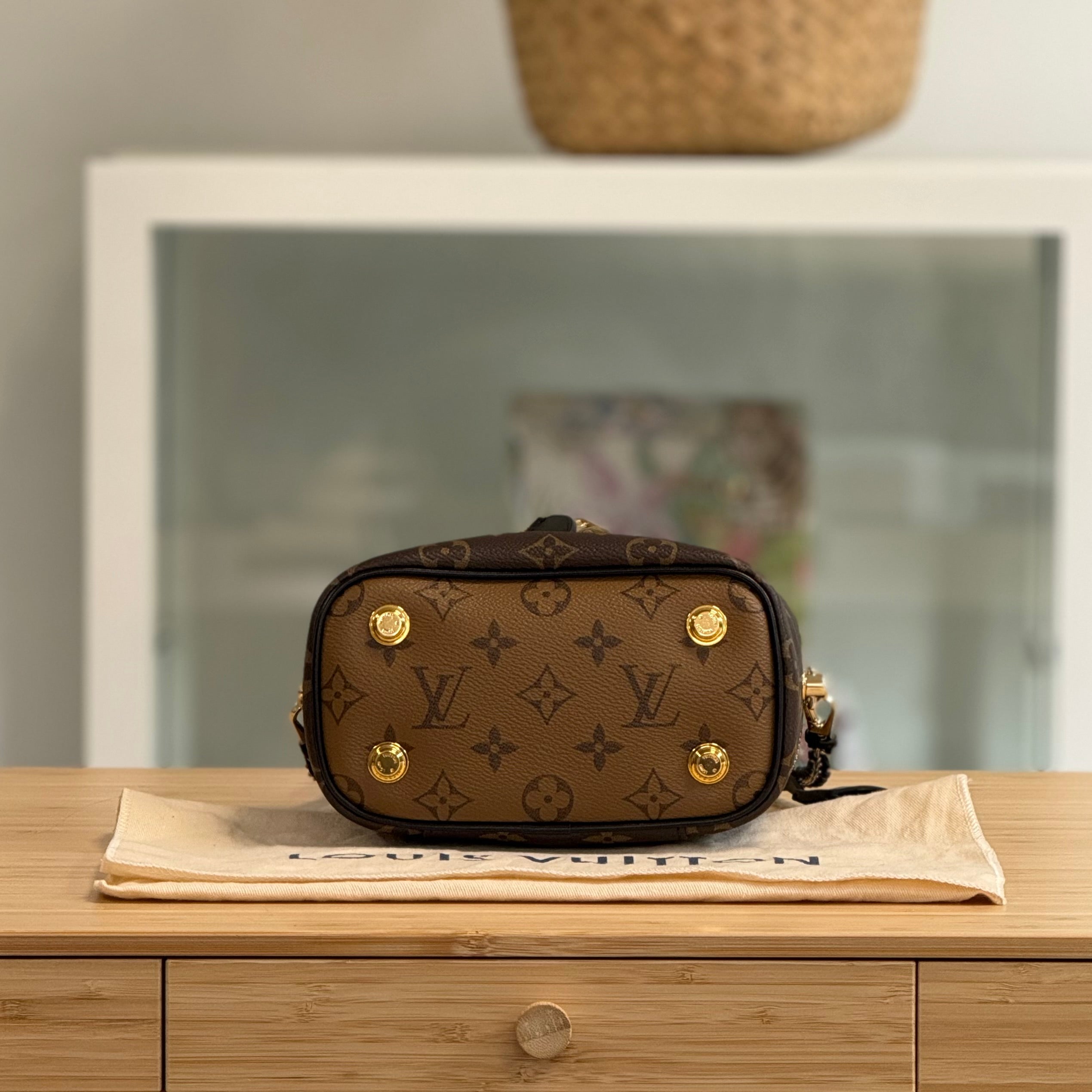 Included: Louis Vuitton dustbag, Louis Vuitton pouch, Louis Vuitton padlock, Louis Vuitton cloche, Louis Vuitton keys x2, Louis Vuitton fabric card