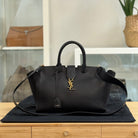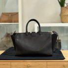 Description: This Saint Laurent Monogram Downtown Cabas has a zip closure and a magnetic fasten. It has double top handles and a removable strap. It has 5 studs on the base. Inside it has 1 flat pocket.