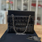 Description: This Chanel Typewriter Clutch has 1 top handle and 1 removable long strap. It has a flap closure with a press-stud fasten. Inside there are 2 compartments. There is 1 zipped pocket in the back compartment. The date code begins 6, so it is from 2000-2002.