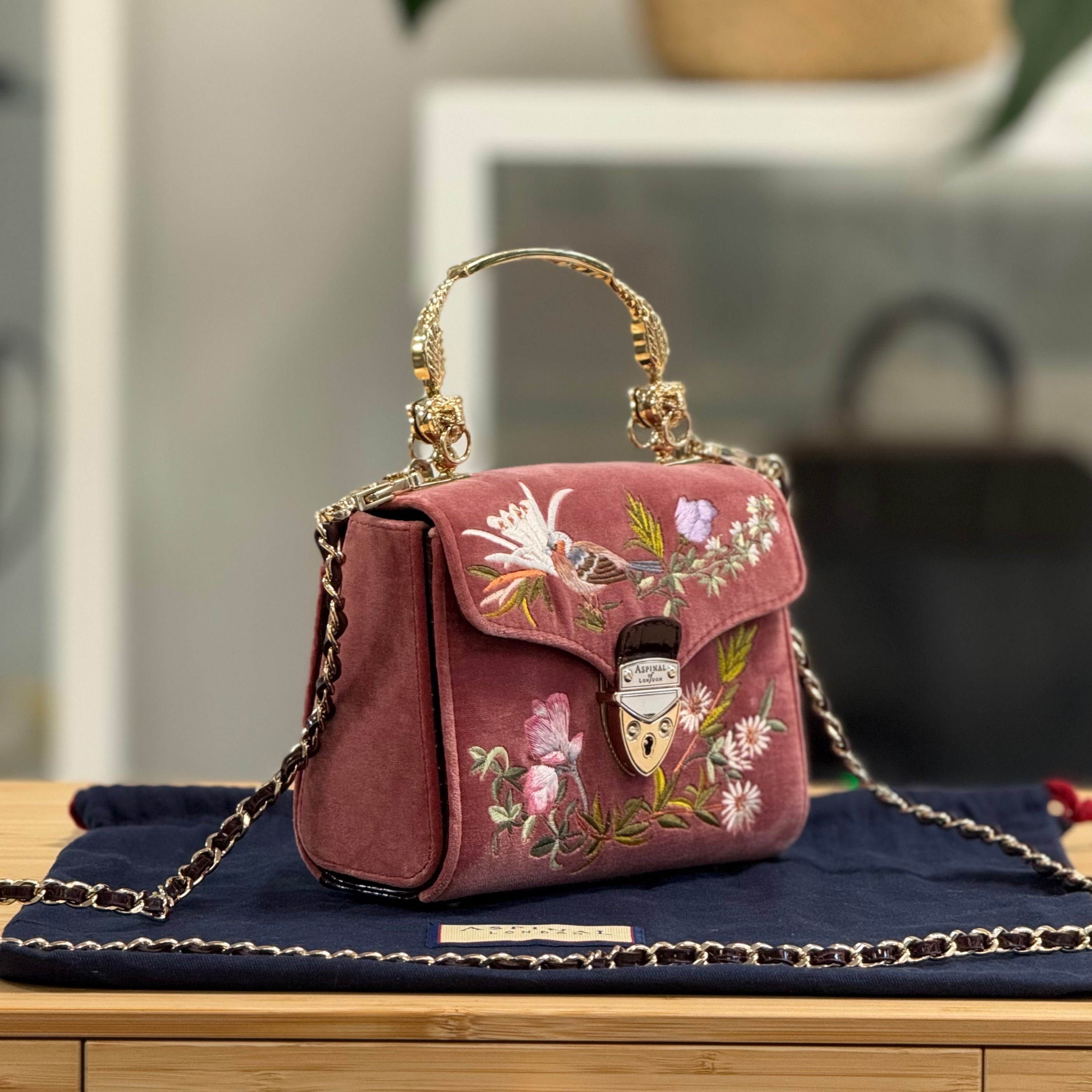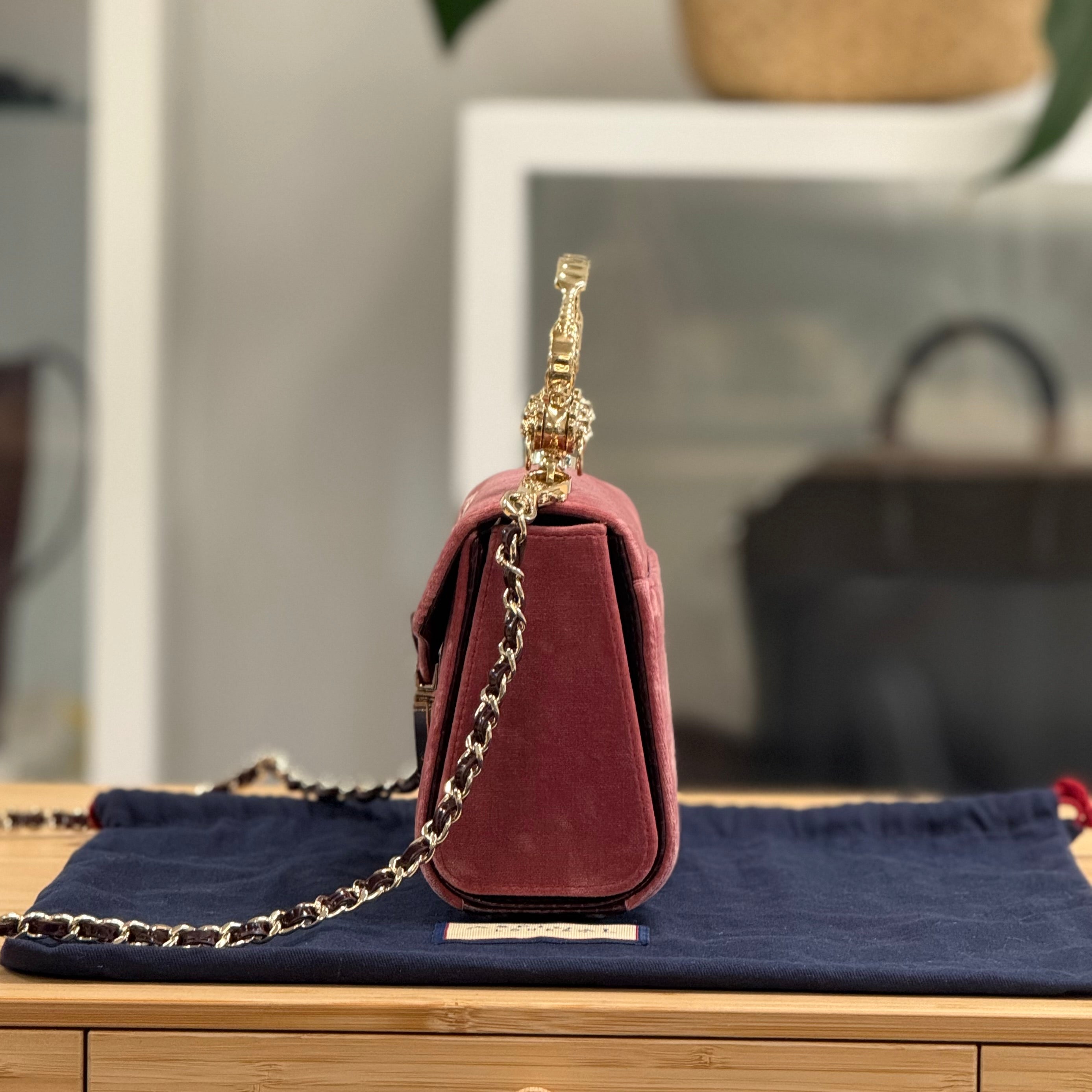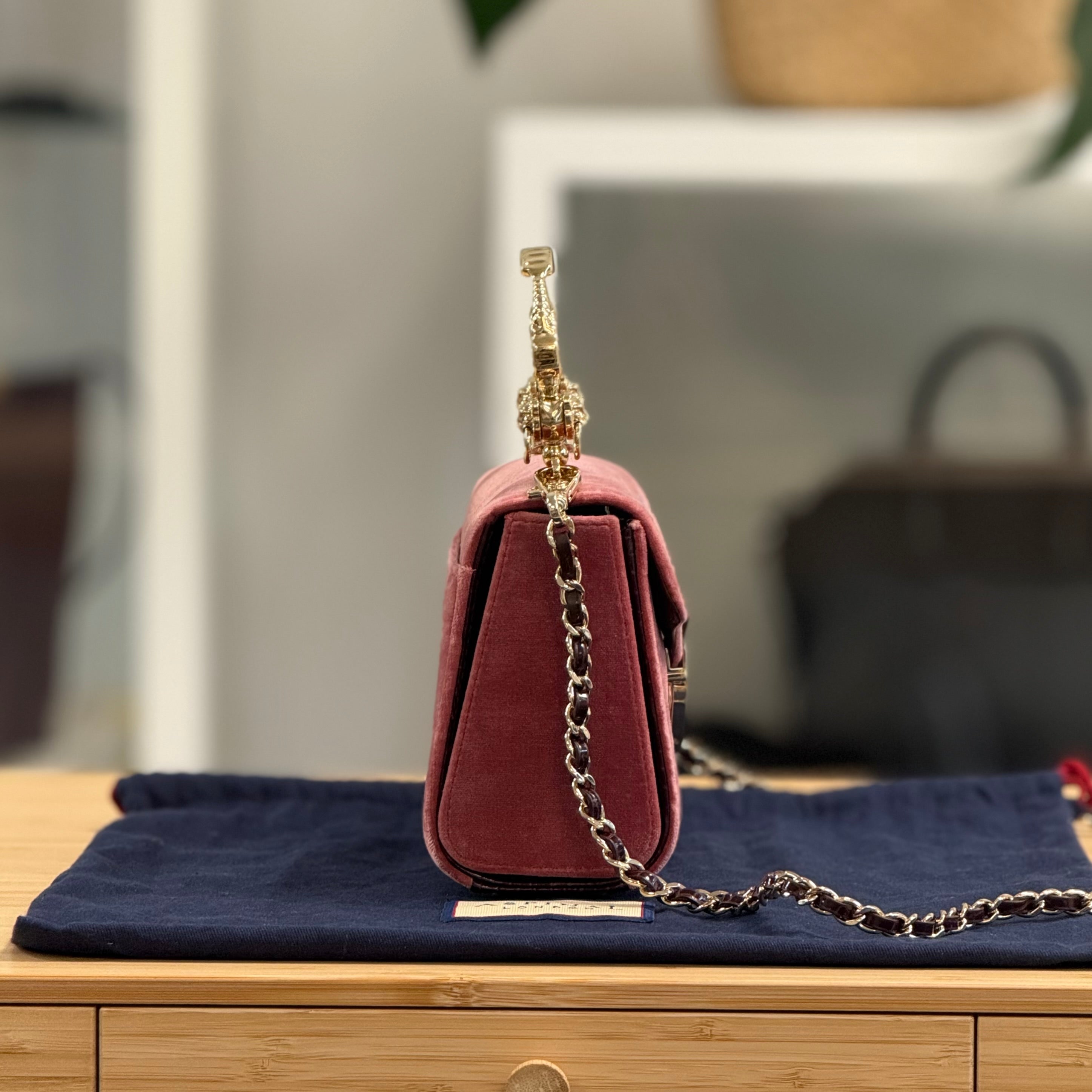 Fabric: Exterior-velvet. Interior-fabric. Straps-chain/leather