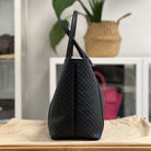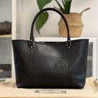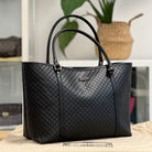 Description: This Gucci Guccissima Tote has double top handles. It has a top closure with magnetic press stud fasten. Inside it has 1 zipped pocket and 2 flat pockets.